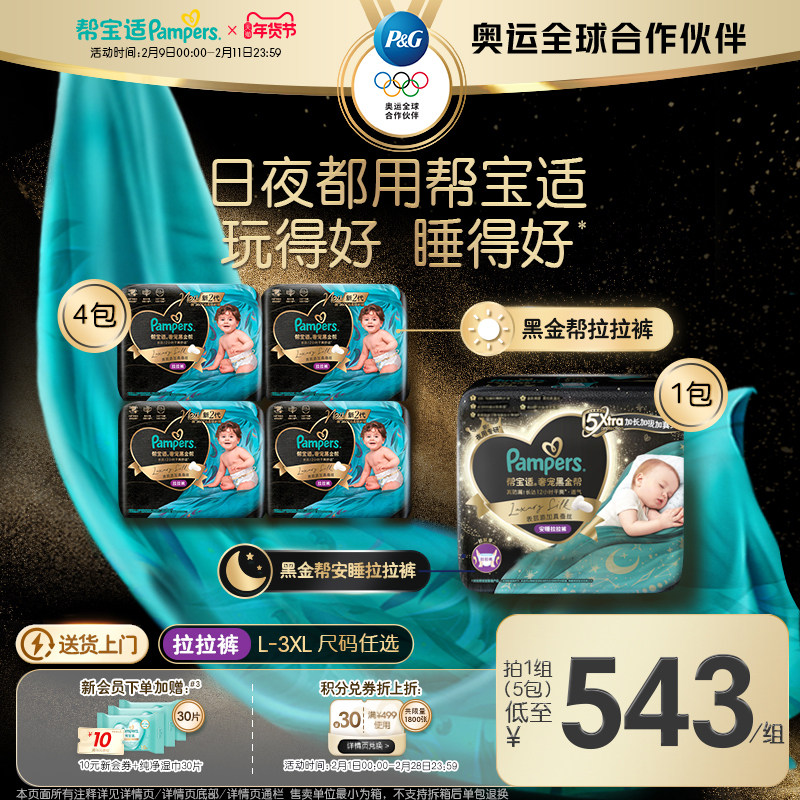 📚 【日夜组合】帮宝适黑金帮拉拉裤*2箱+奢宠安睡拉拉裤L-XXXL