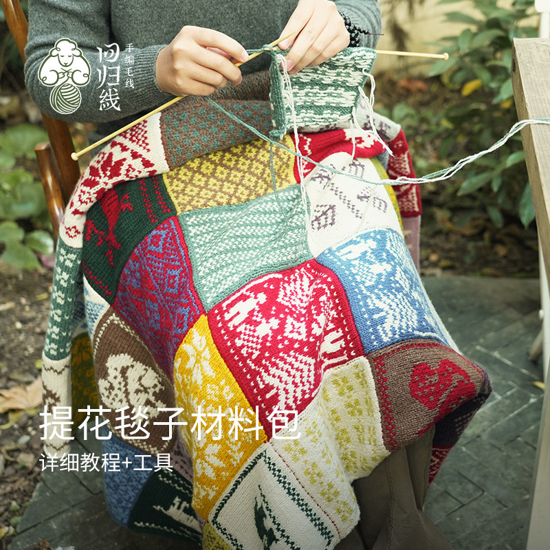 📚 回归线 寄闲悸动提花毯子diy手工编织毛线毯子羊毛材料包送教程