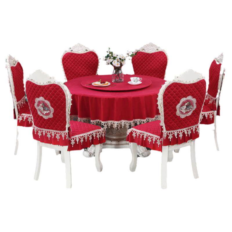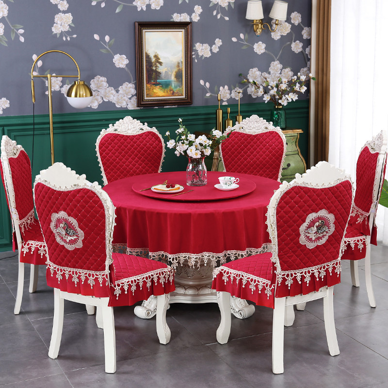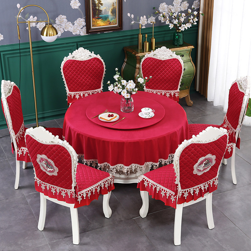 📚 双层带转盘的大圆桌桌布椅套x椅垫套装餐桌椅子套罩欧式凳子靠背