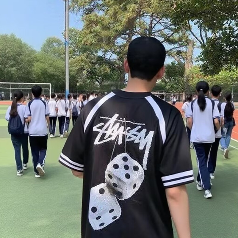 📚 潮牌Stu短袖t恤运动健身篮球黑八8球骰子跑步斯图西上衣男女外贸