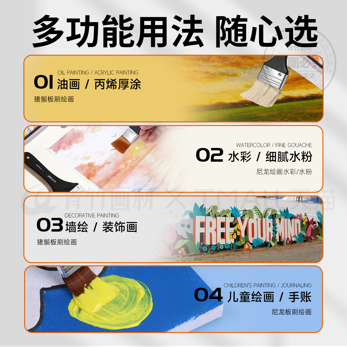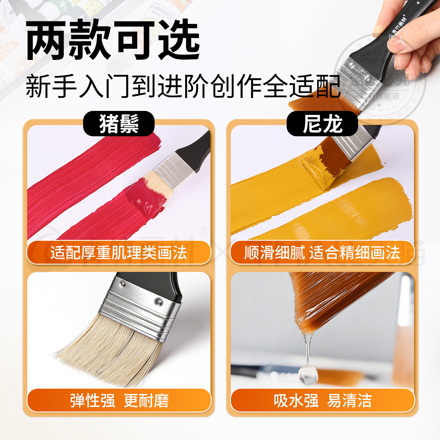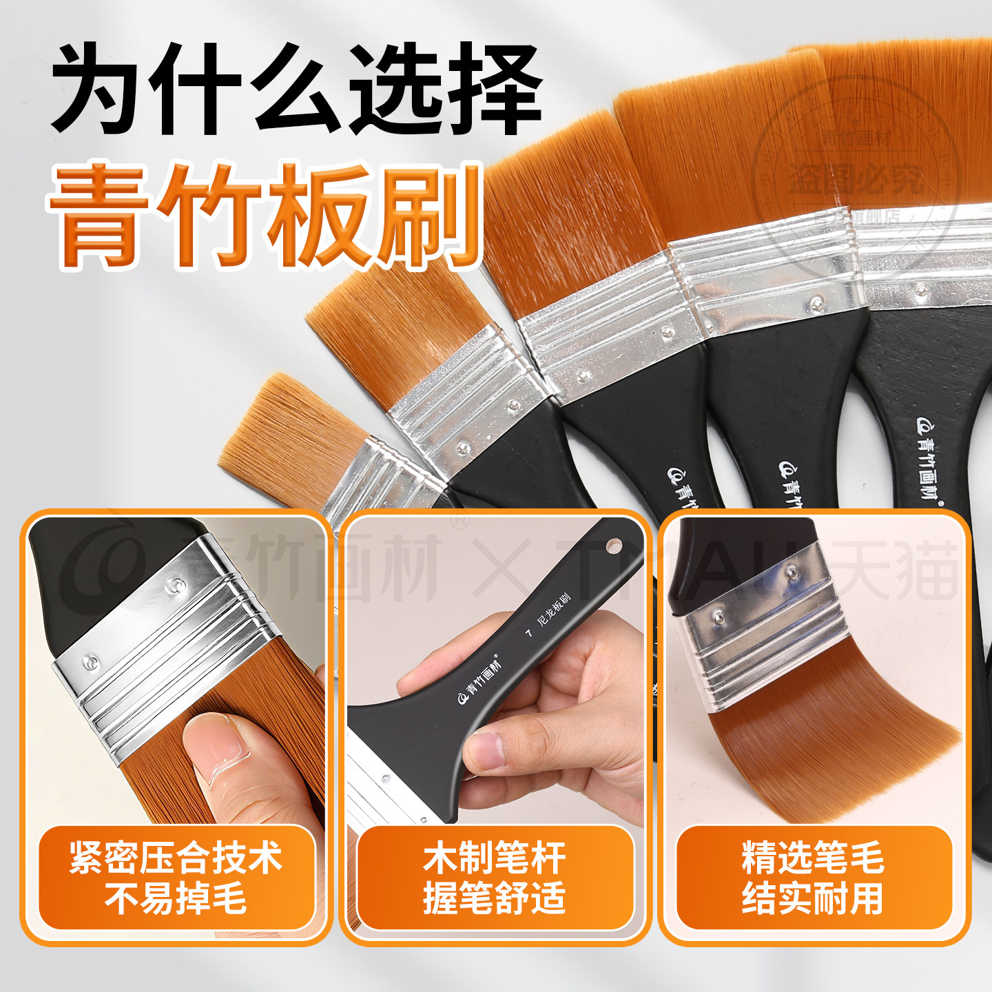 📚 青竹画笔刷子画画排笔丙烯油画丙烯水粉水彩尼龙猪鬃板刷套装颜料专用笔墙绘工具大小绘画尼龙刷美术彩绘底刷