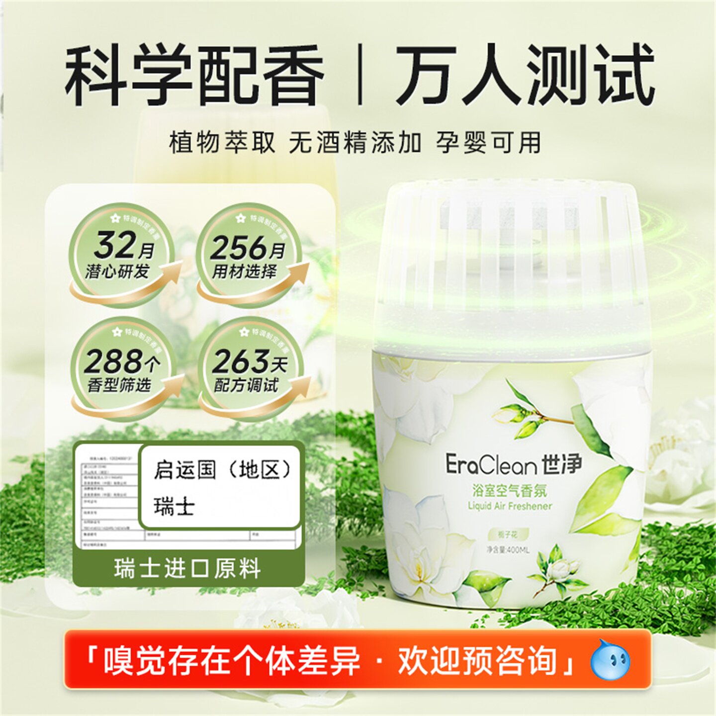📚 Eraclean世净空气清新剂室内香薰厕所卫生间去异味神器家用香氛