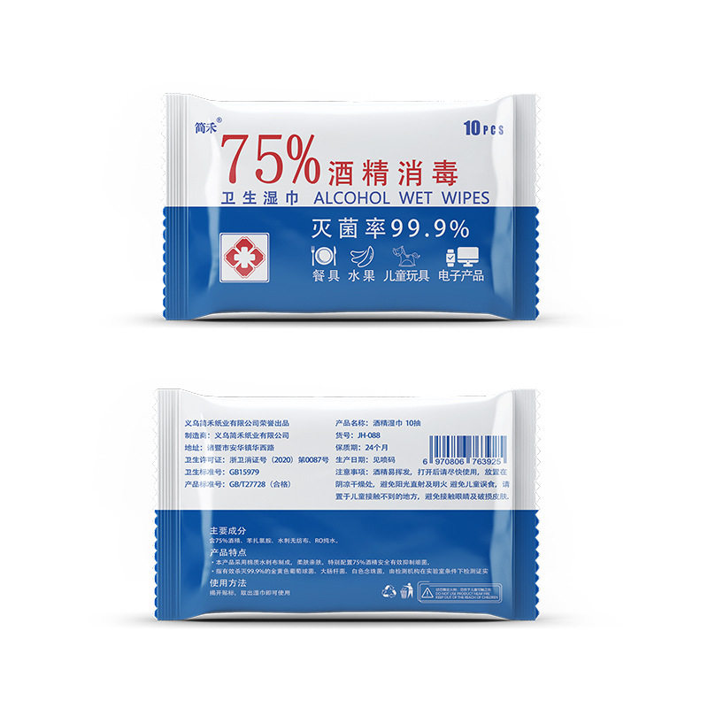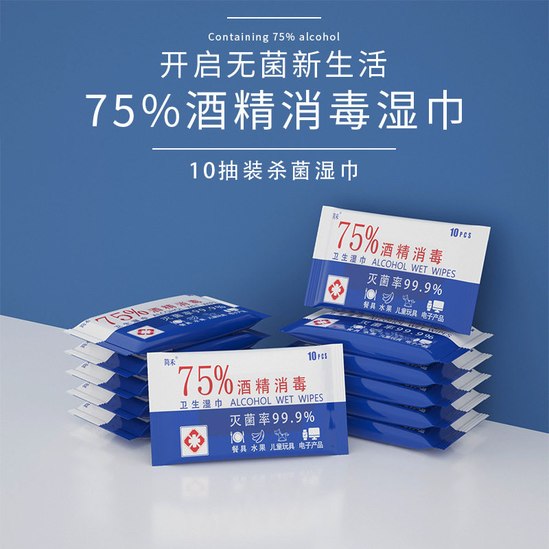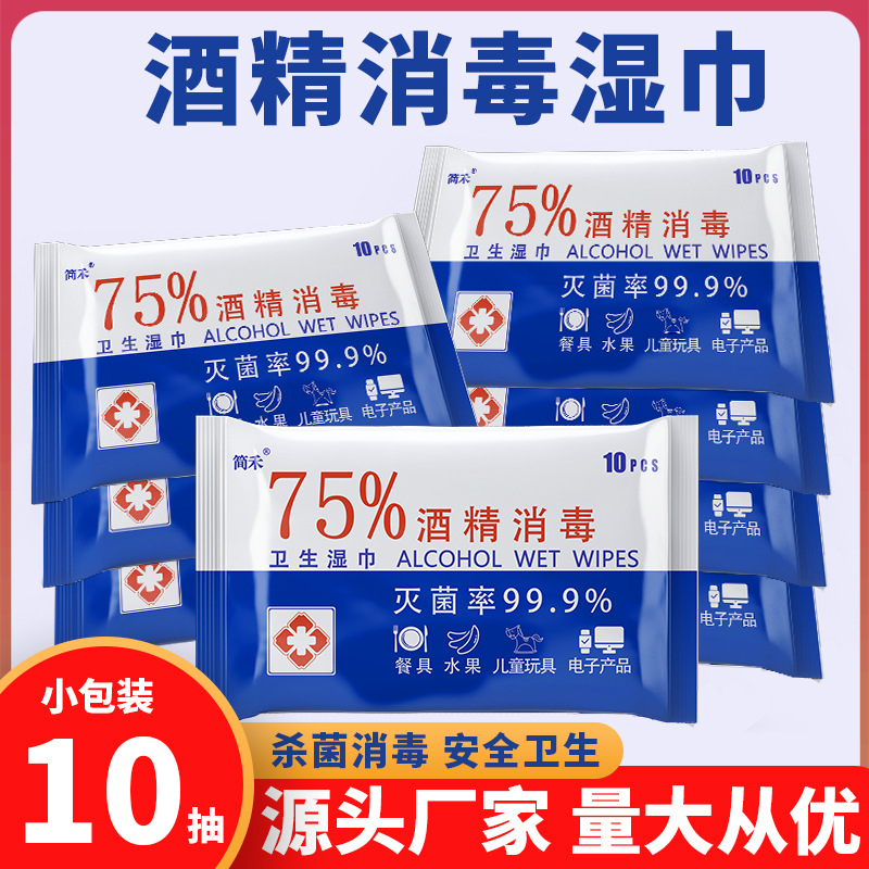 📚 简禾75%度酒精湿巾10抽小包一次性消毒湿纸巾独立包装棉片