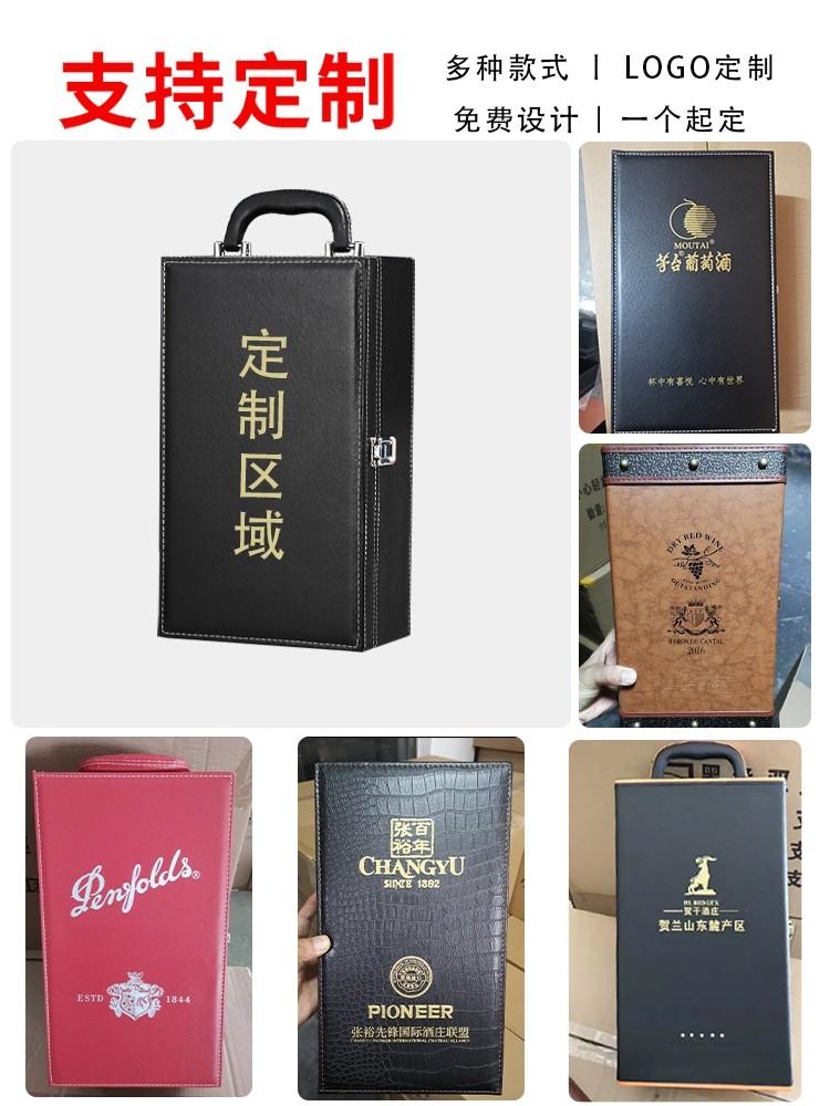 📚 红酒包装礼盒高档皮盒空盒双支装葡萄酒收纳箱子2定制木盒印logo