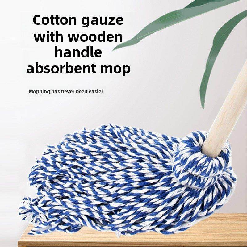📚 老式拖把木杆棉线圆头墩布毛巾布酒店工厂公司保洁专用木把柄地拖