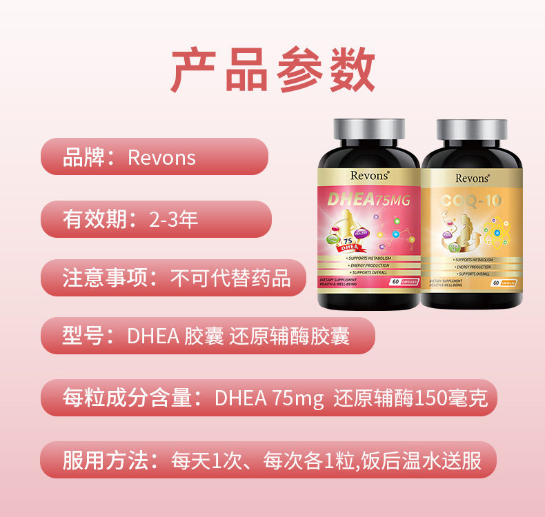 📚 美国DHEA和还原辅酶Q10组合卵巢子宫保养女性备孕胶囊2瓶装