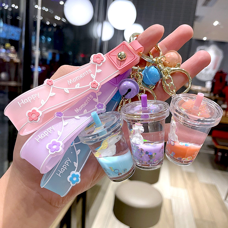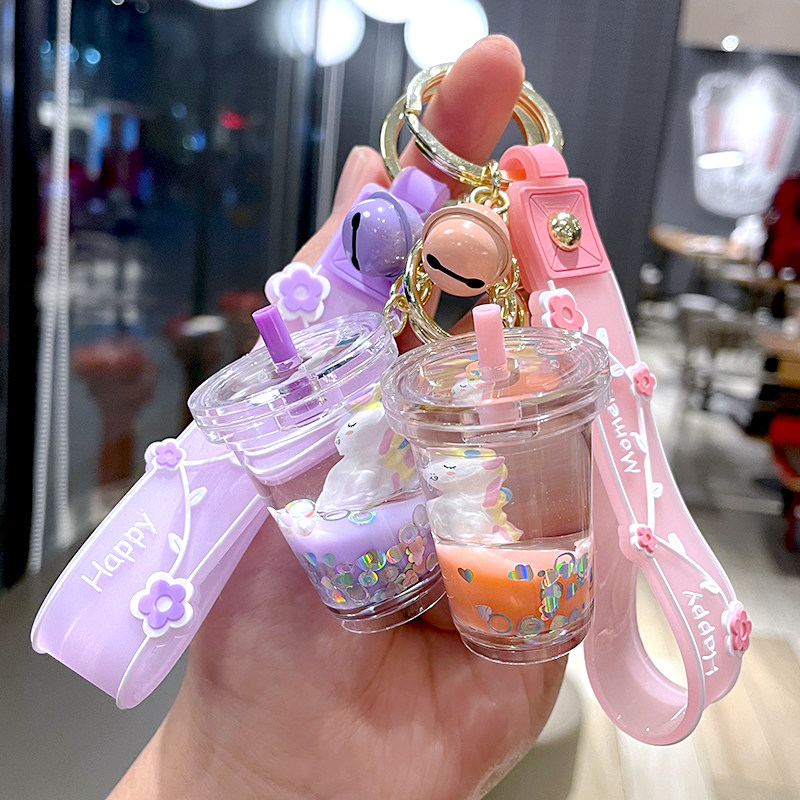 📚 可爱入油独角兽奶茶杯钥匙扣女创意精致流沙飞马书包挂件情侣礼物