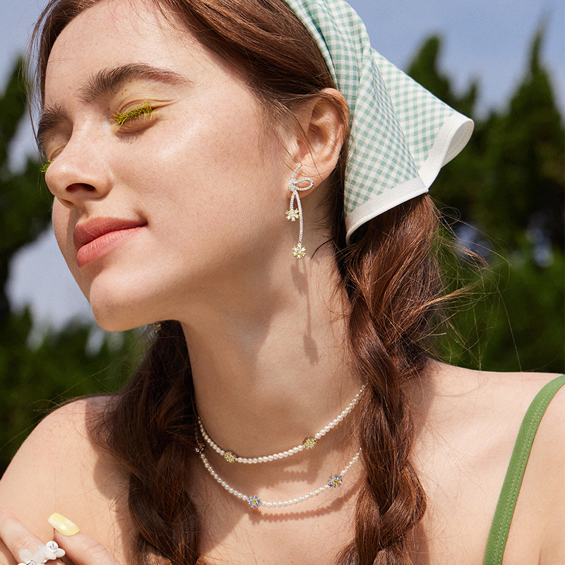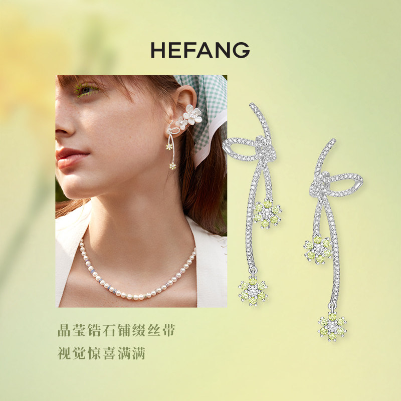 📚 [HEFANG何方奥莱]何方珠宝蔷薇丝带耳环女轻奢耳坠耳钉耳饰礼物女