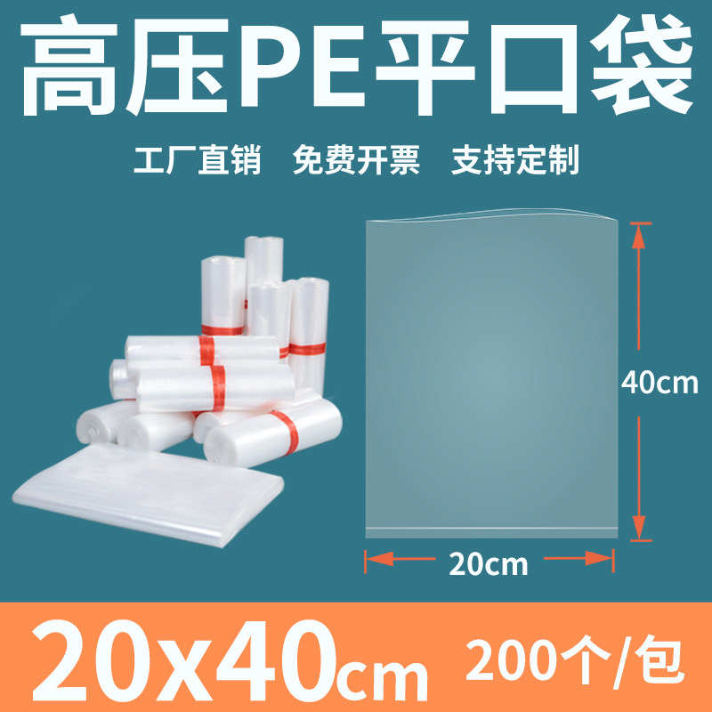 📚 透明平口塑料袋20*40高压PE加厚防尘食品工厂内膜包装袋定制印刷