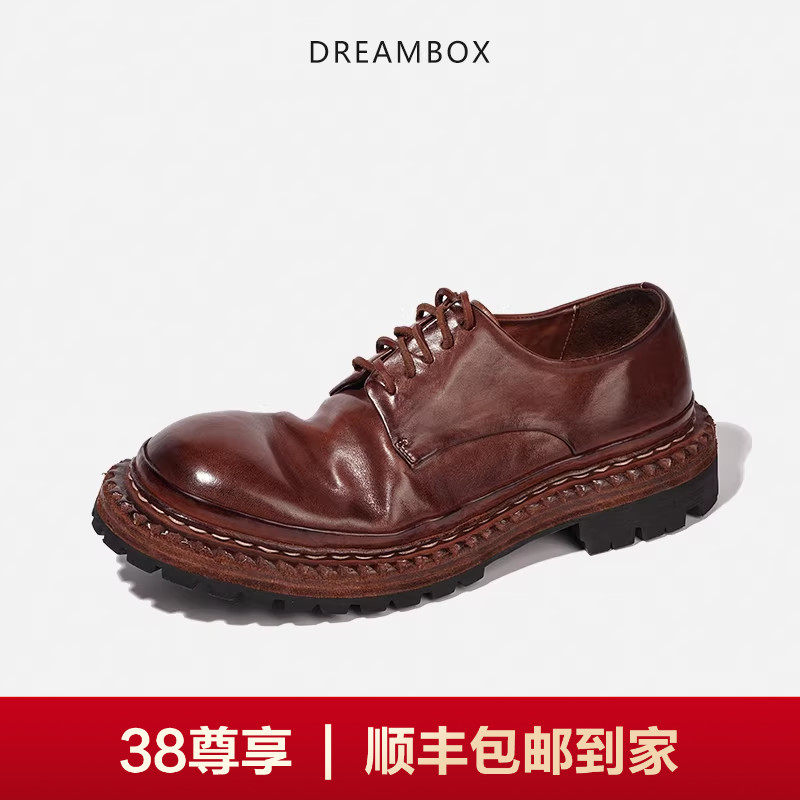 📚 DREAMBOX钧博vibram耐磨厚底增高大头德比鞋手工马皮男士休闲皮鞋