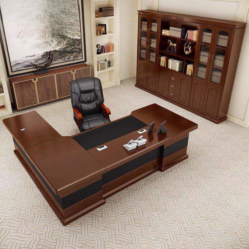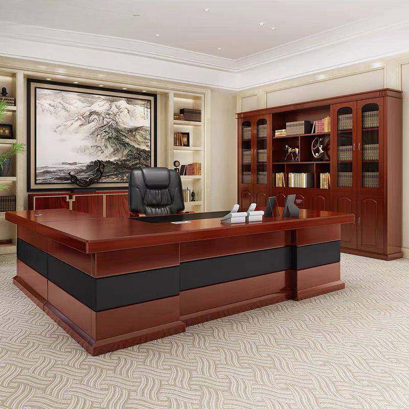 📚 办办公桌老板桌总实裁大班桌台新中式桌椅套166装组合现代木皮公