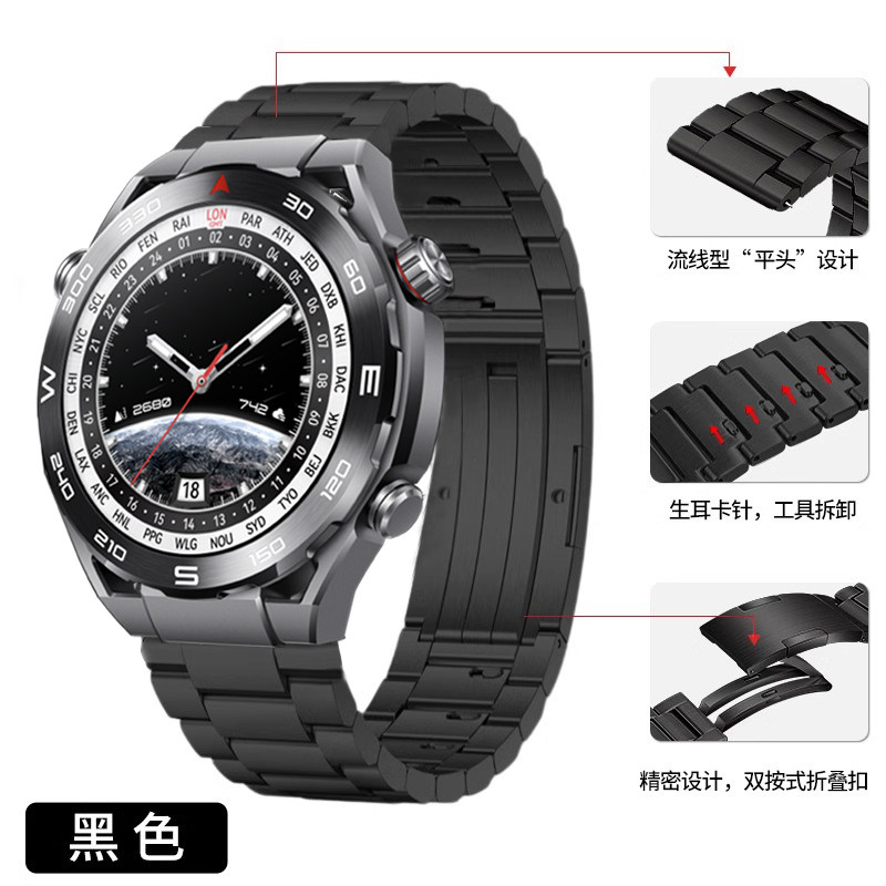 📚 适用oppowatchx2手表带三珠全钛watchS表带watchX运动watch4pro智能腕表3pro男士大漠银月金属墨石岩黑表链