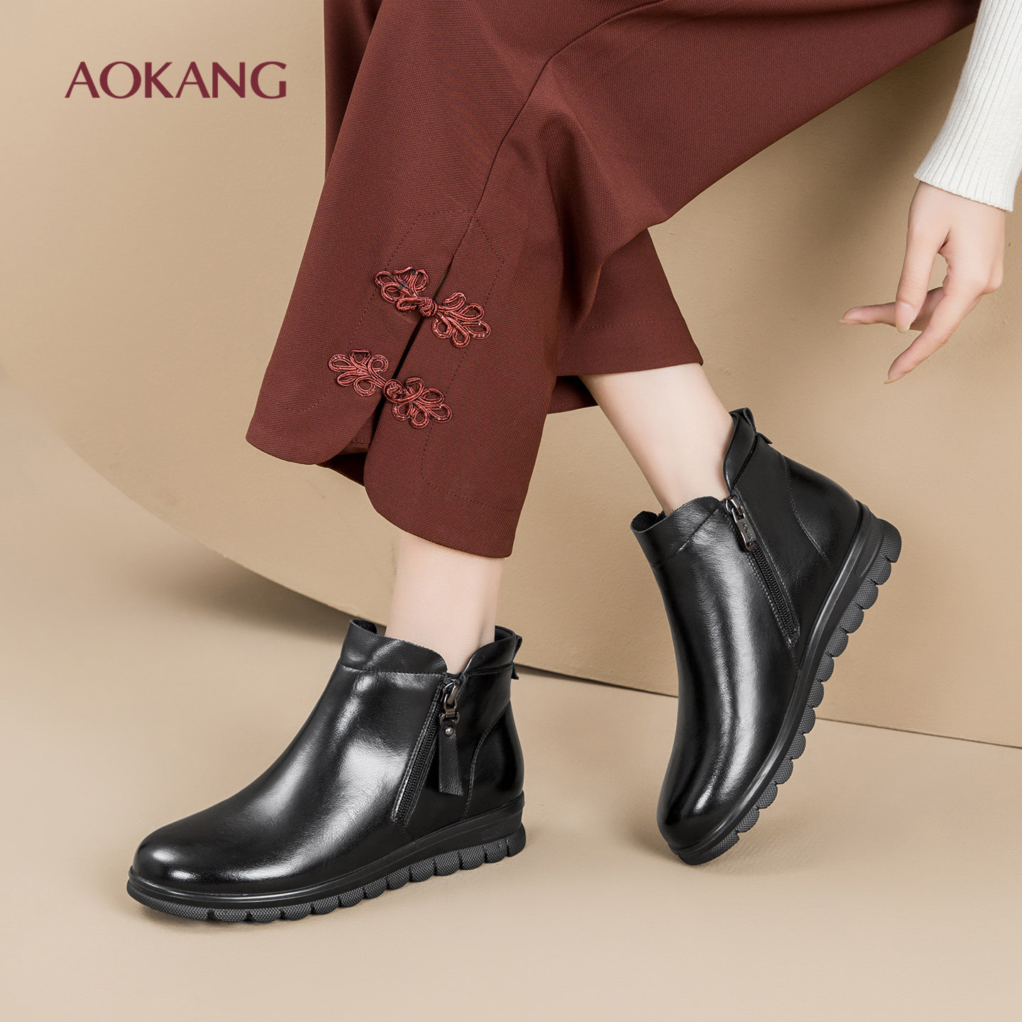 #奥康真皮妈妈鞋 #冬季保暖 #平底短靴 #舒适度爆表 #券后价459 #温暖加倍