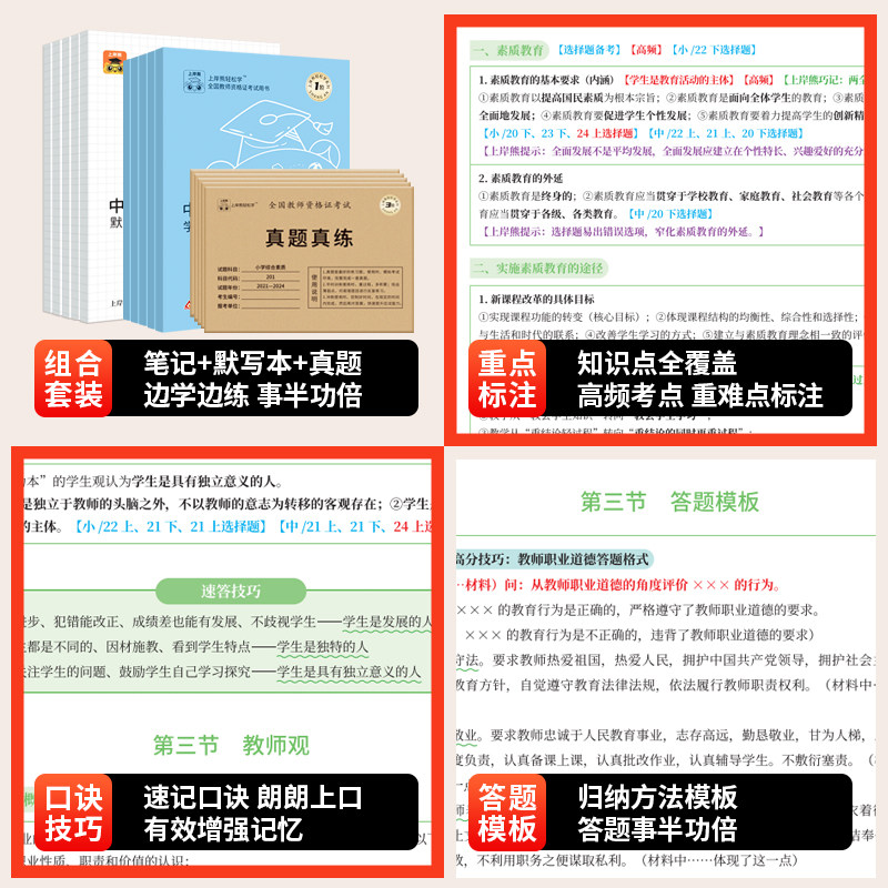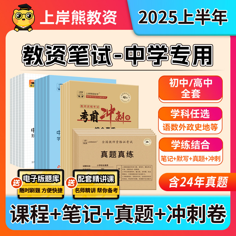 📚 上岸熊中学教资2025上半年初中高中教师资格证笔试考试教材重点学霸笔记资料科一二科目三英语美术语文数学体育中职综合素质真题