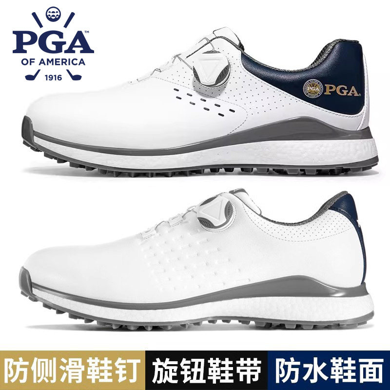 📚 美国PGA 高尔夫球鞋 男鞋防水鞋 防侧滑鞋钉 旋钮鞋带爆米花中底