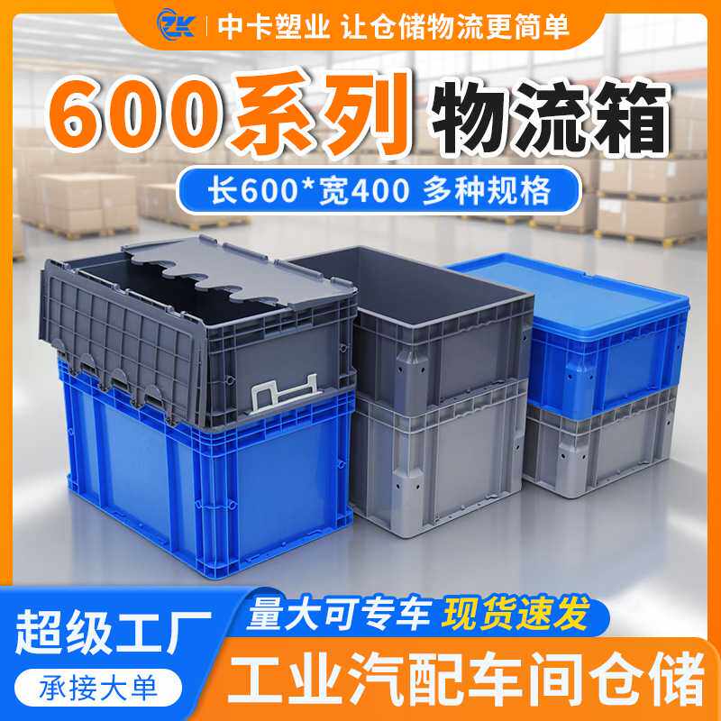 📚 中卡600*400中大尺寸EU物流箱仓库周转箱包角防撞可上立体库货架