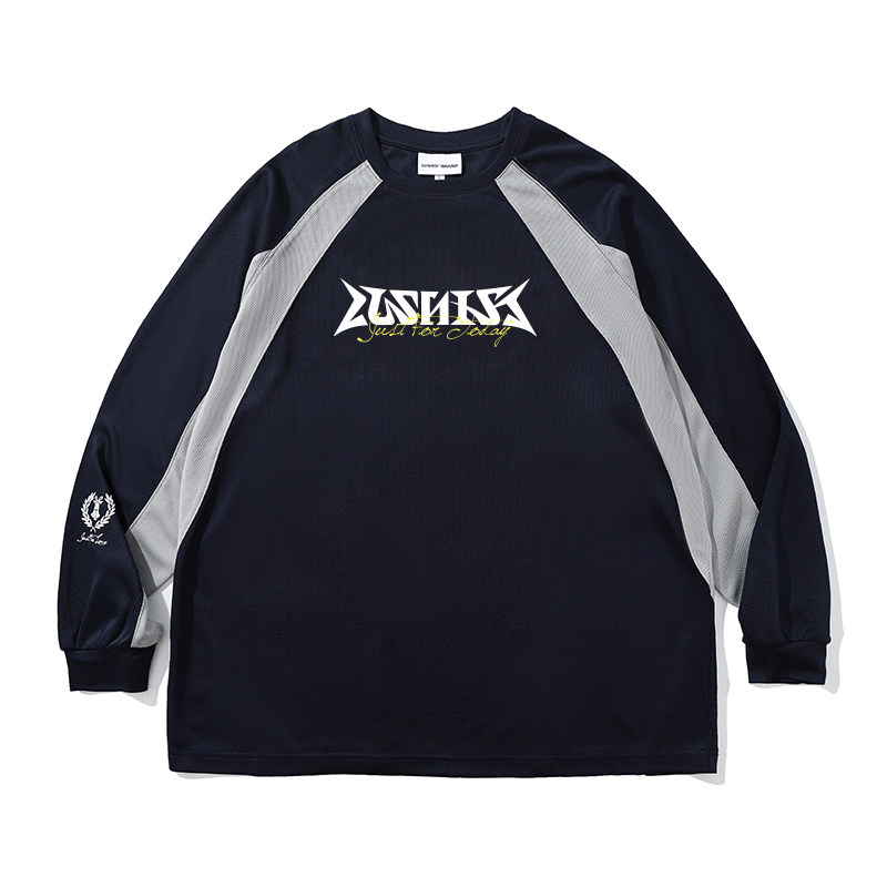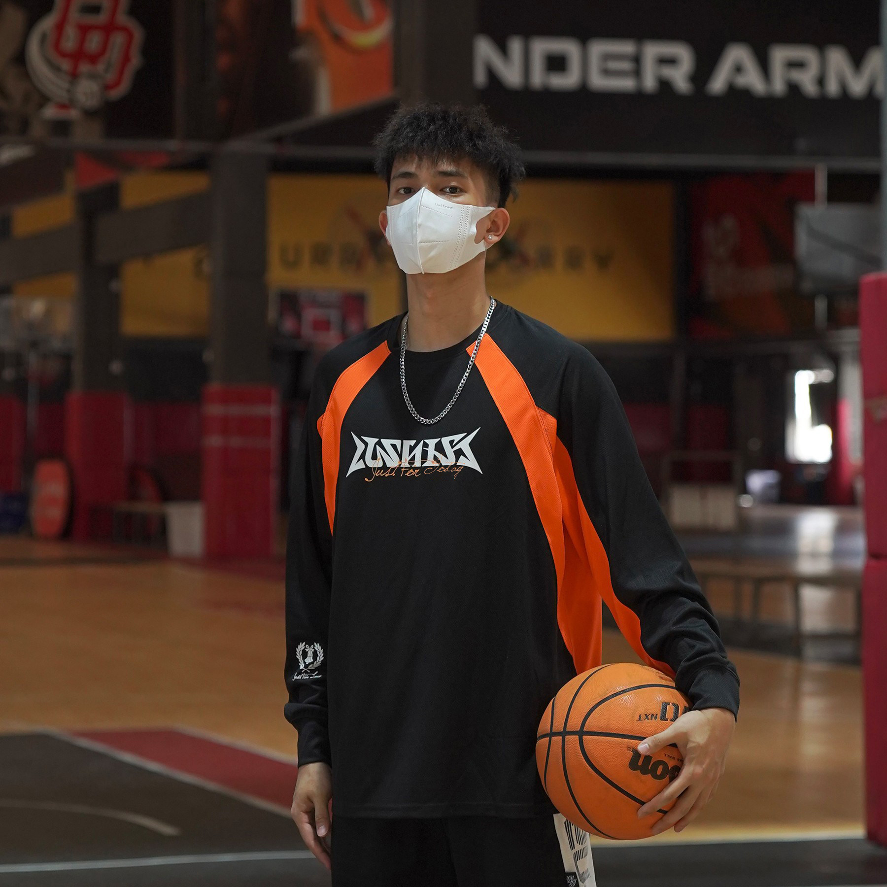 📚 LUSHISI拼色插肩长袖炽热如火主题微弹速干运动长袖t恤投篮训练服