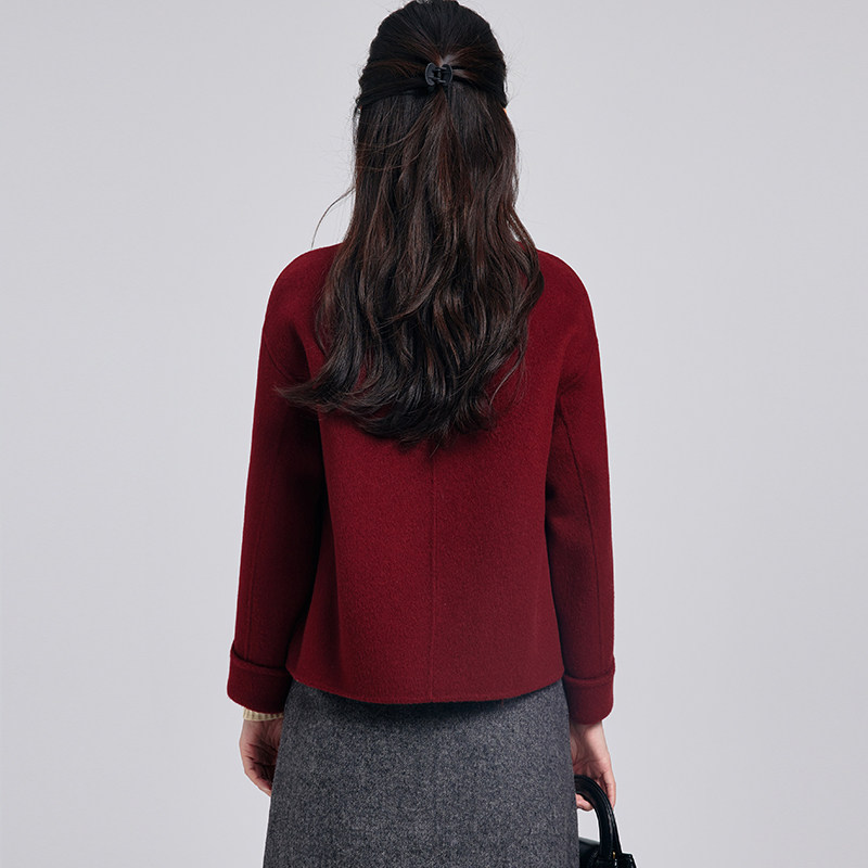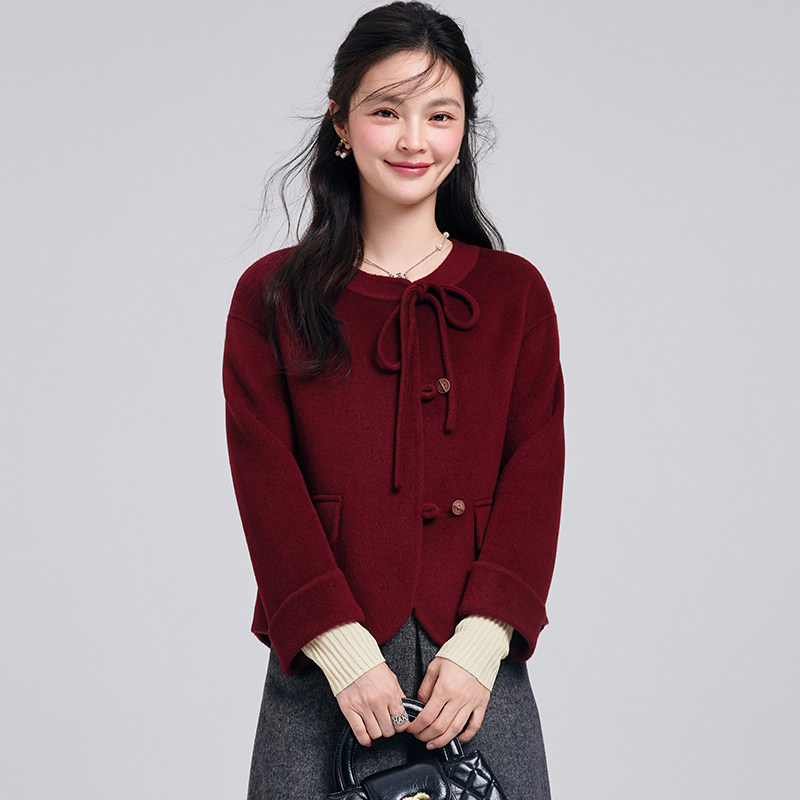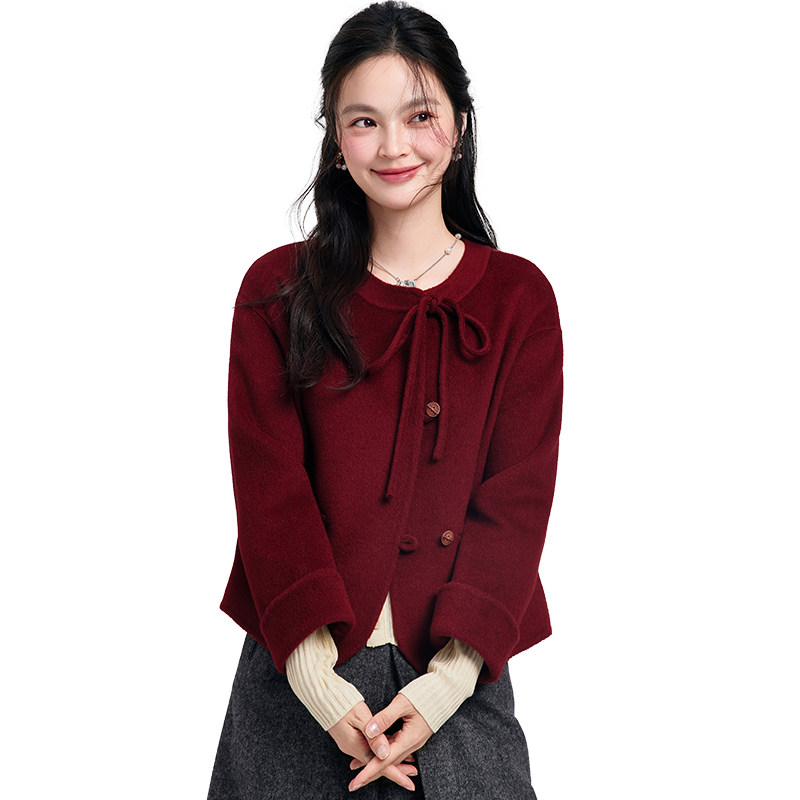 📚 新款高端双面绒大衣女短款羊毛呢小个子甜美系带显瘦减龄外套秋冬