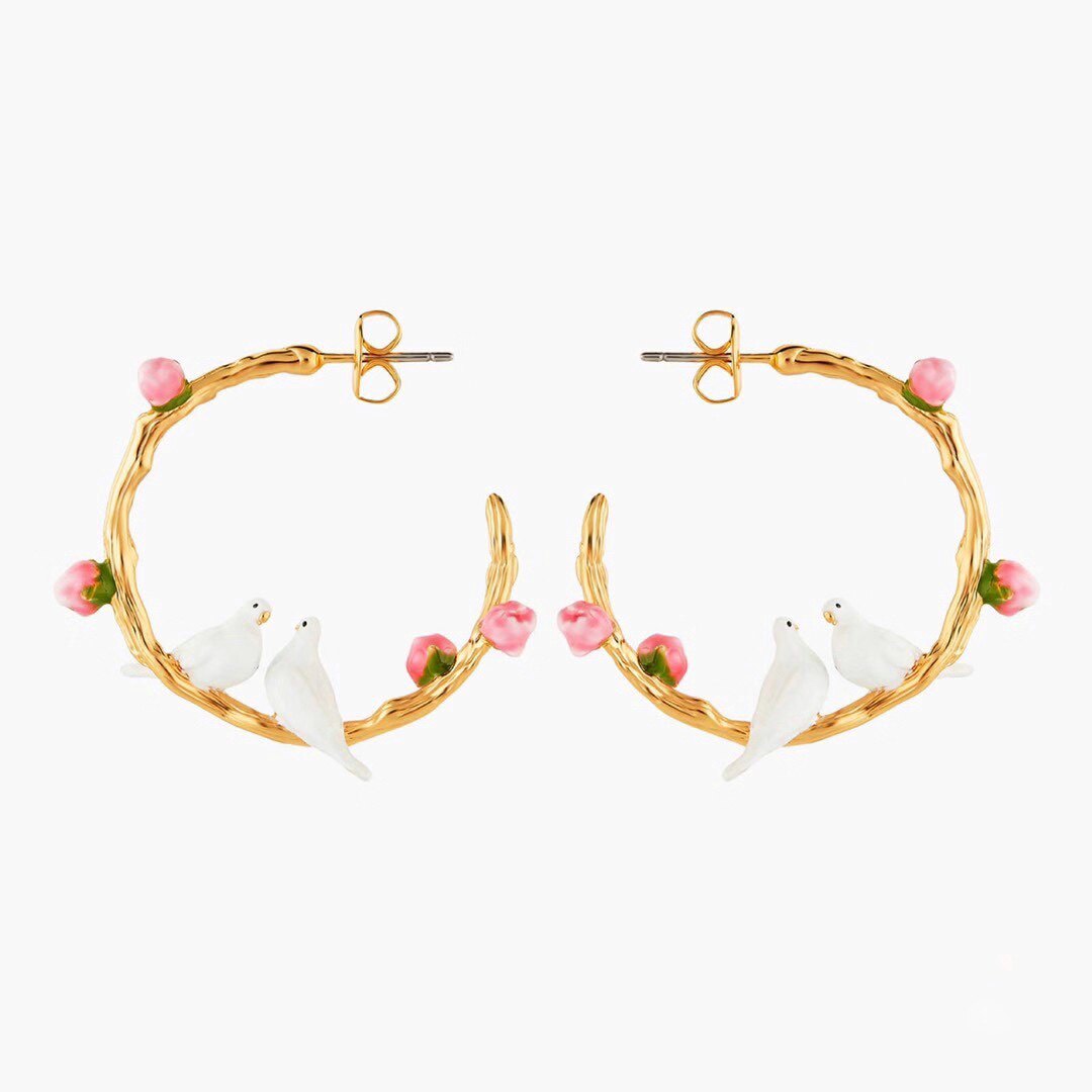 📚 手工珐琅 慈善白鸽系列 小鸟 牡丹花风铃草 耳环