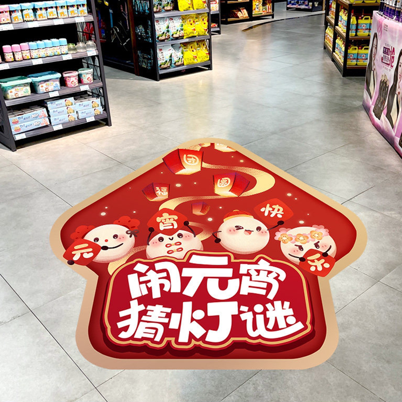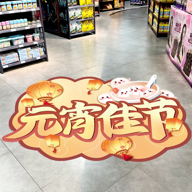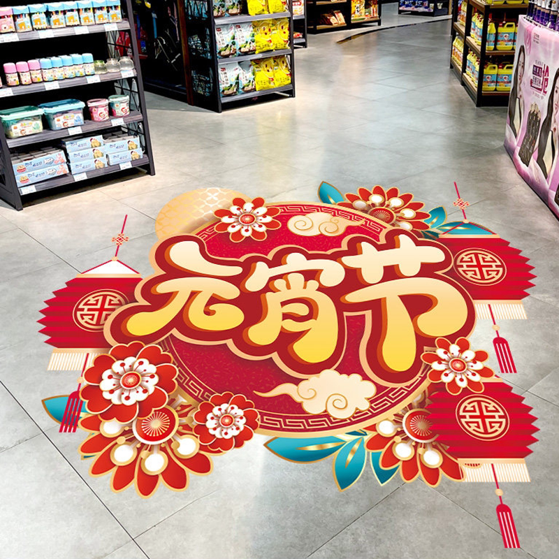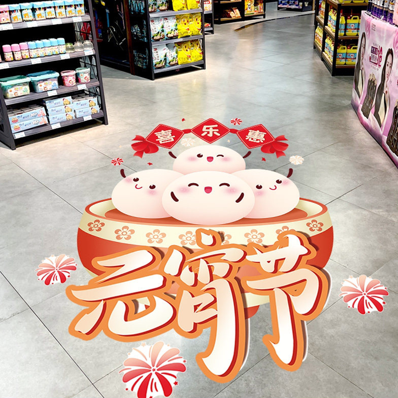 📚 元宵佳节装饰品地贴活动海报物料商场店铺正月十五元宵喜乐氛围场景布置贴纸一起吃元宵赏花灯吃元宵地贴