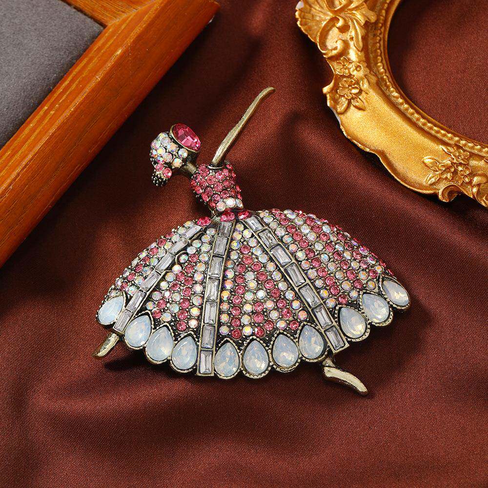 📚 复古重工满钻跳舞女郎优雅气质芭蕾舞者胸针大衣外套水钻胸花