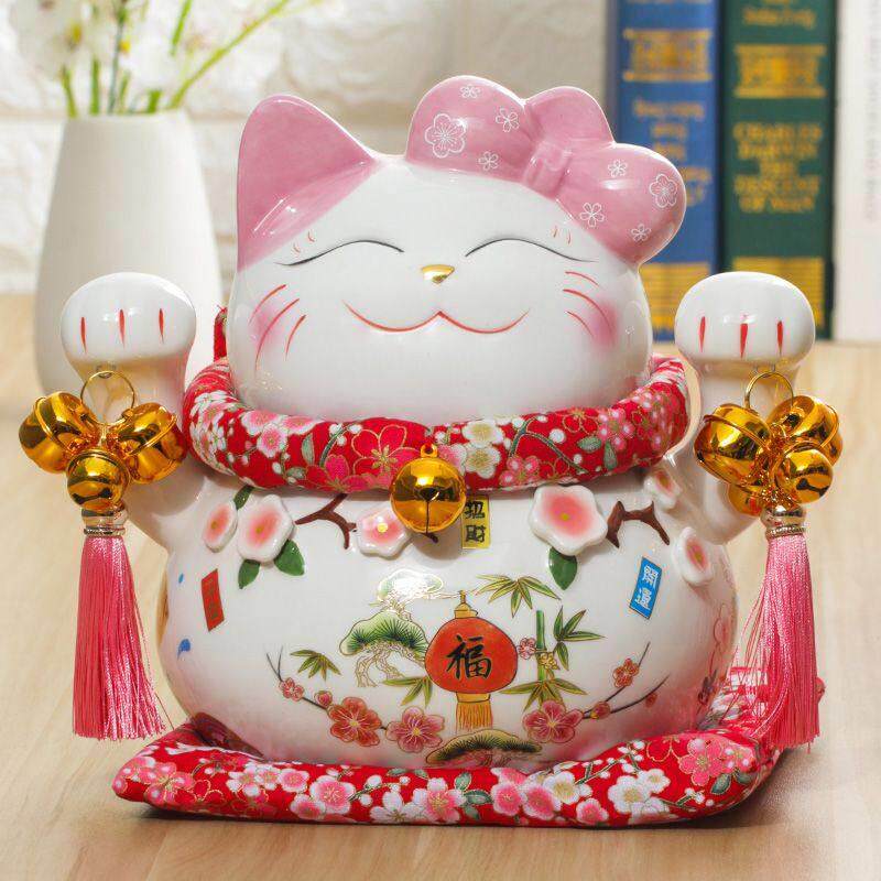 📚 招财猫摆件旺姻缘招桃花猫陶瓷创意礼品恋爱招幸福家居存钱储蓄罐