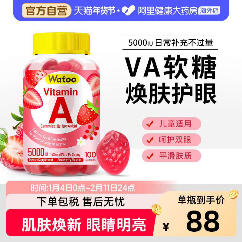 📚 Watoo维生素A软糖儿童青少年成人va5000iu呵护双眼皮肤干燥va补充