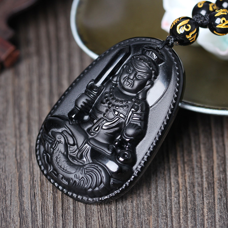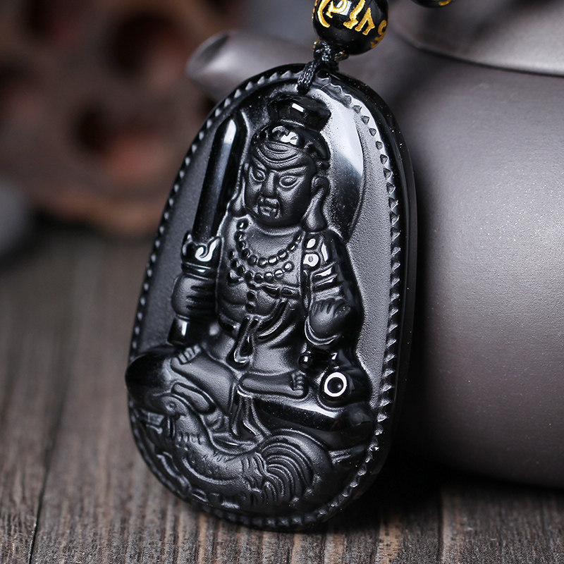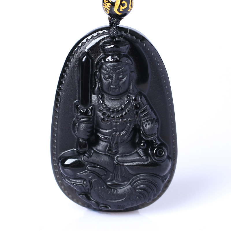📚 乌金黑曜石生肖属鸡本命佛守护神不动明王不动尊菩萨吊坠项链男女