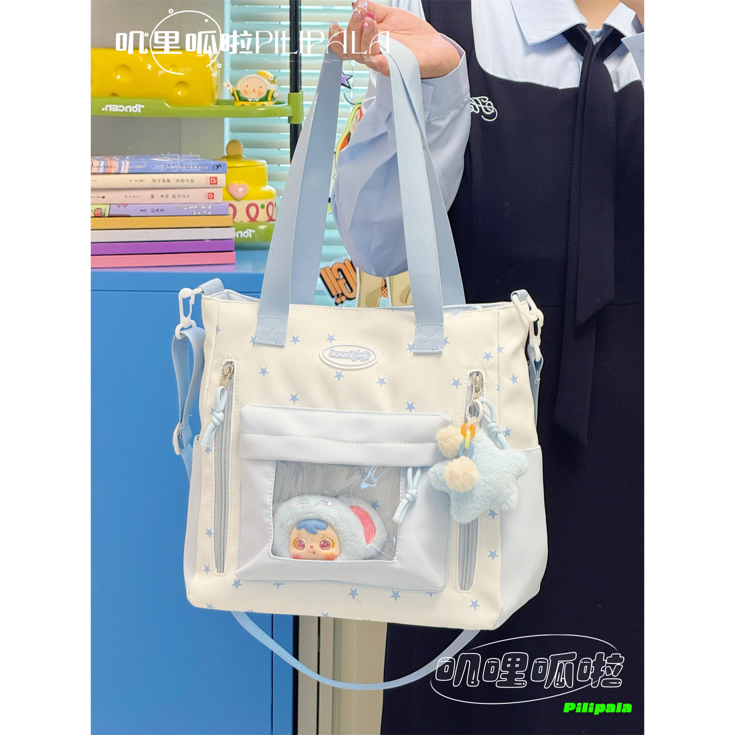 📚 叽哩呱啦奶黄色星星斜挎包痛包女学生大容量通勤单肩包补习托特包