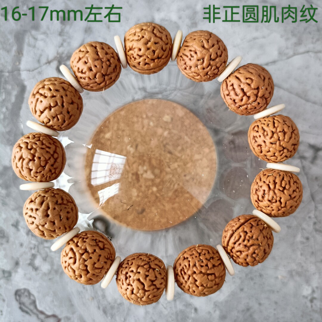 📚 文玩小山桃核手串脑密纹小圆手链持饰品男女包邮矮桩浅纹白茬原皮