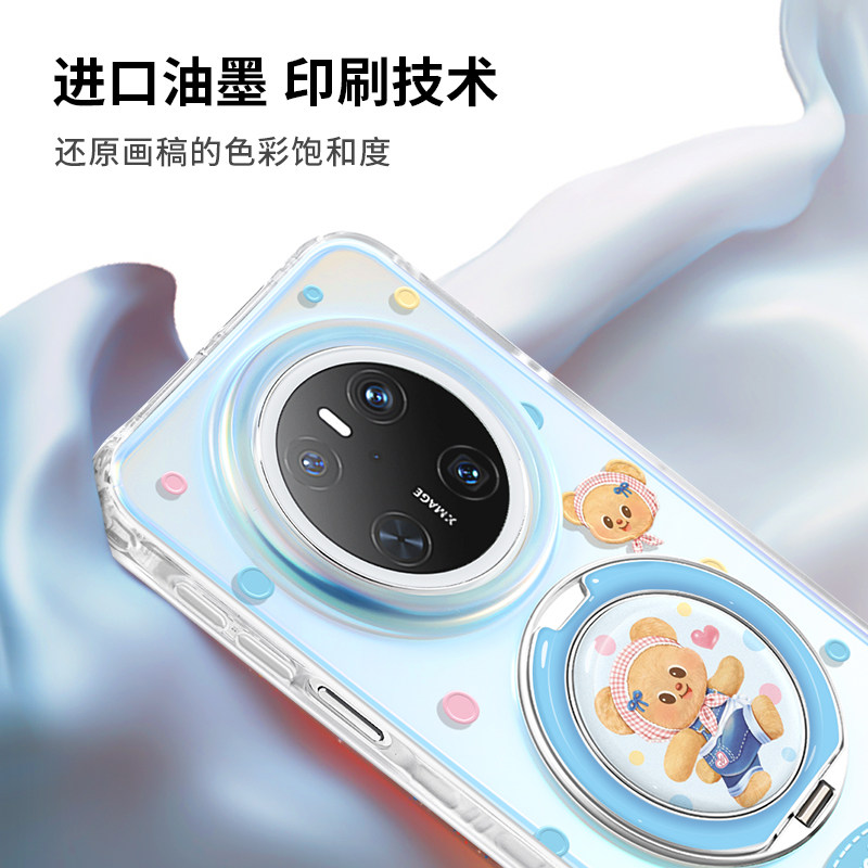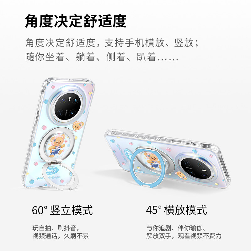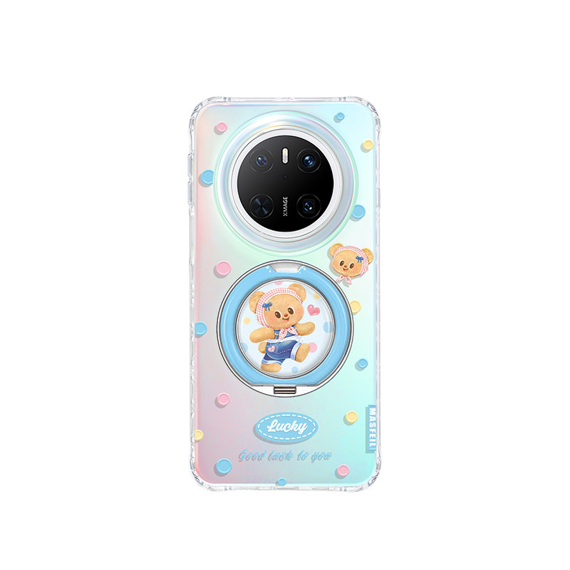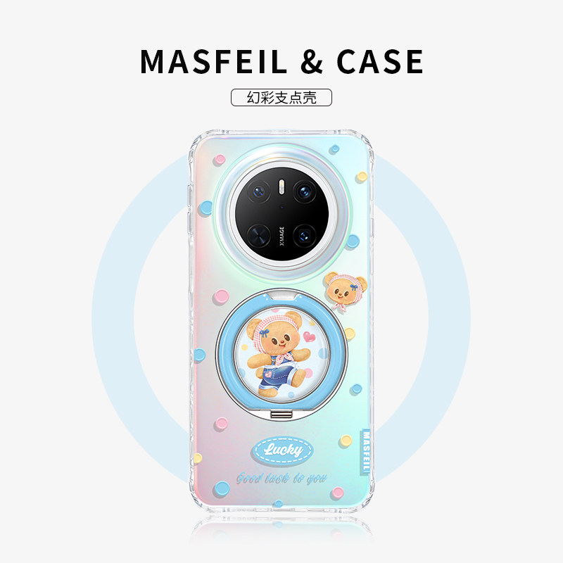 📚 MASFEIL × 波点熊仔适用华为Mate60Pro手机壳带支架新款mt70por+支点保护套防摔Lo9高级感mate80可爱女全包