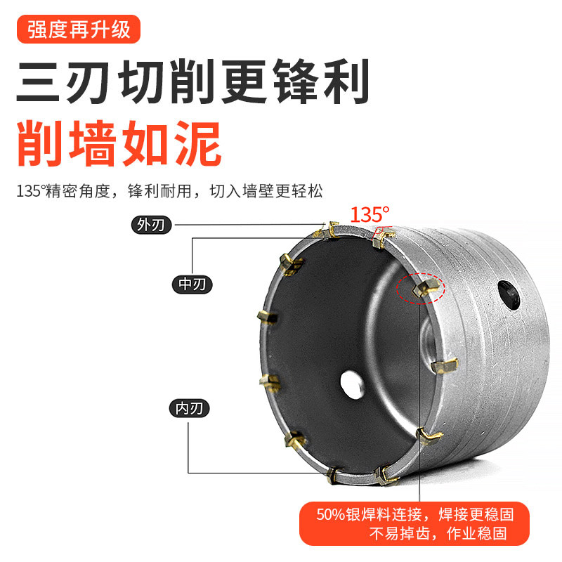 📚 开孔器墙壁电锤冲击家用穿墙空调混凝土砖水泥墙干钻钻头神器打洞