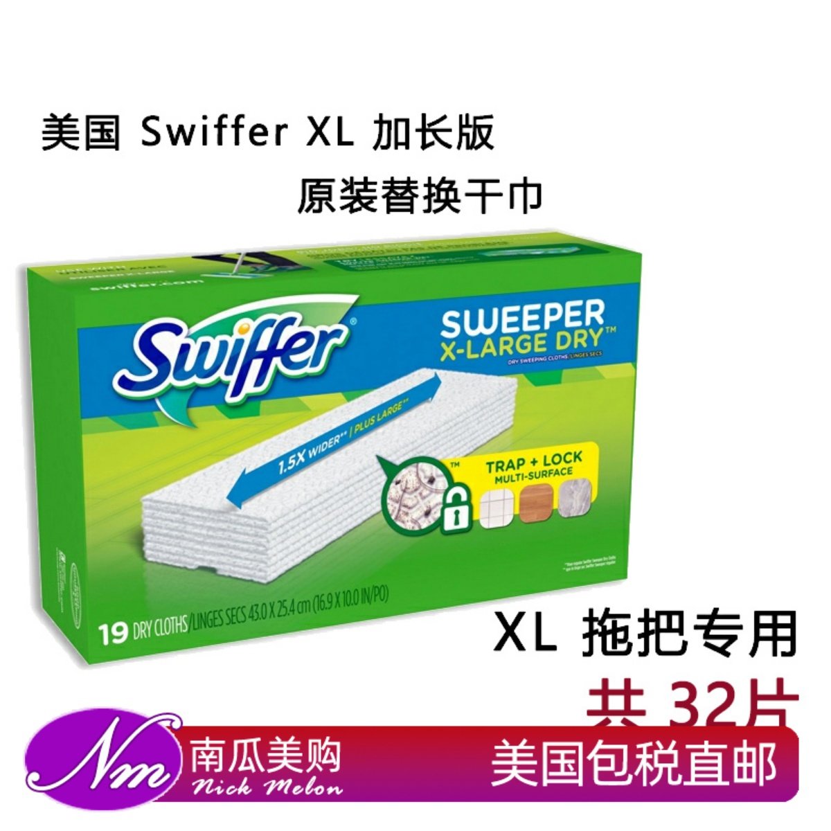 📚 美国直邮Swiffer XL加长版拖把干巾替换布加宽补充纸去静电32片
