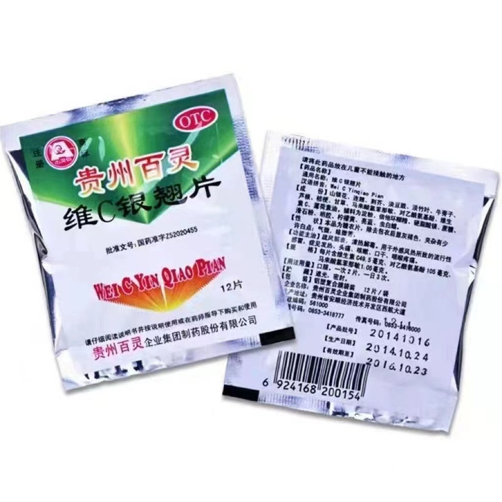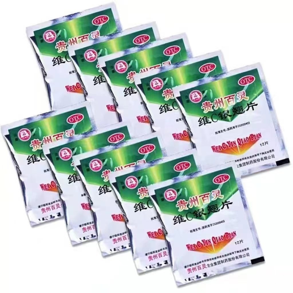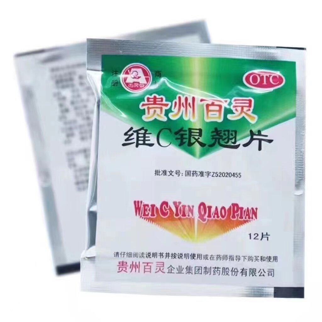 📚 贵州百灵维C银翘片12片/袋清热解毒风热感冒发热头痛咳嗽咽喉痛