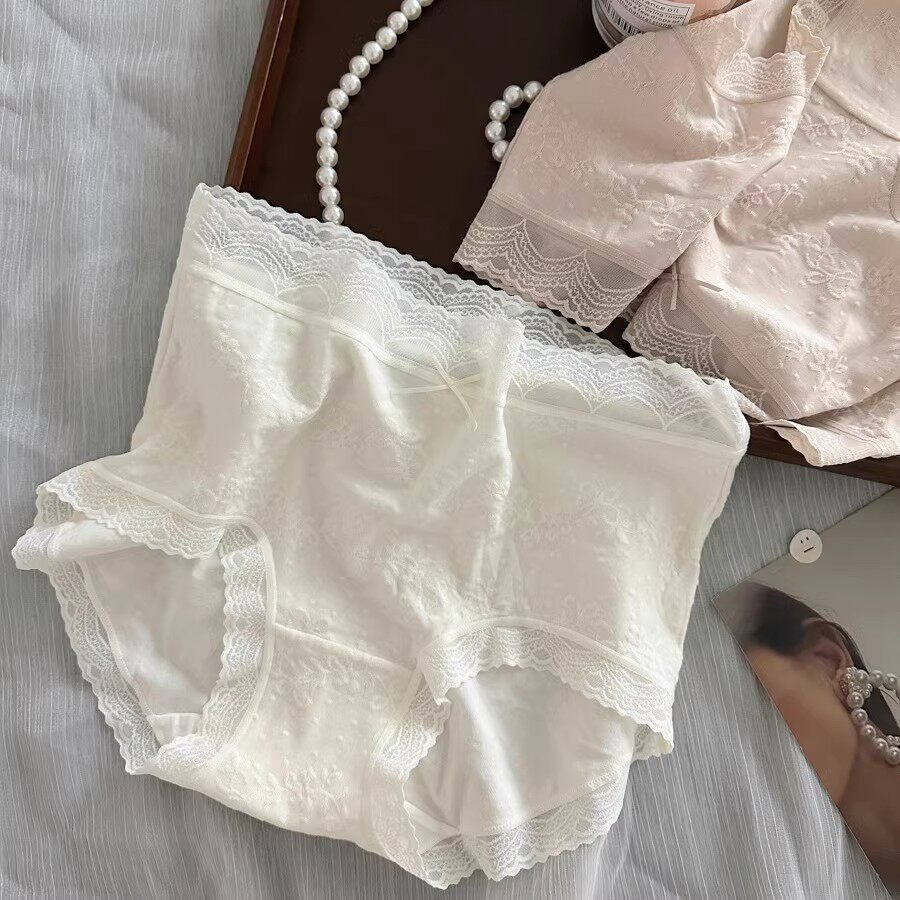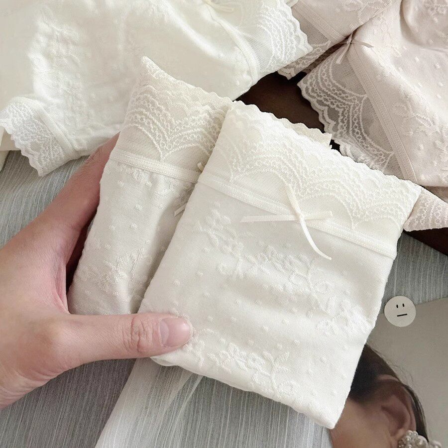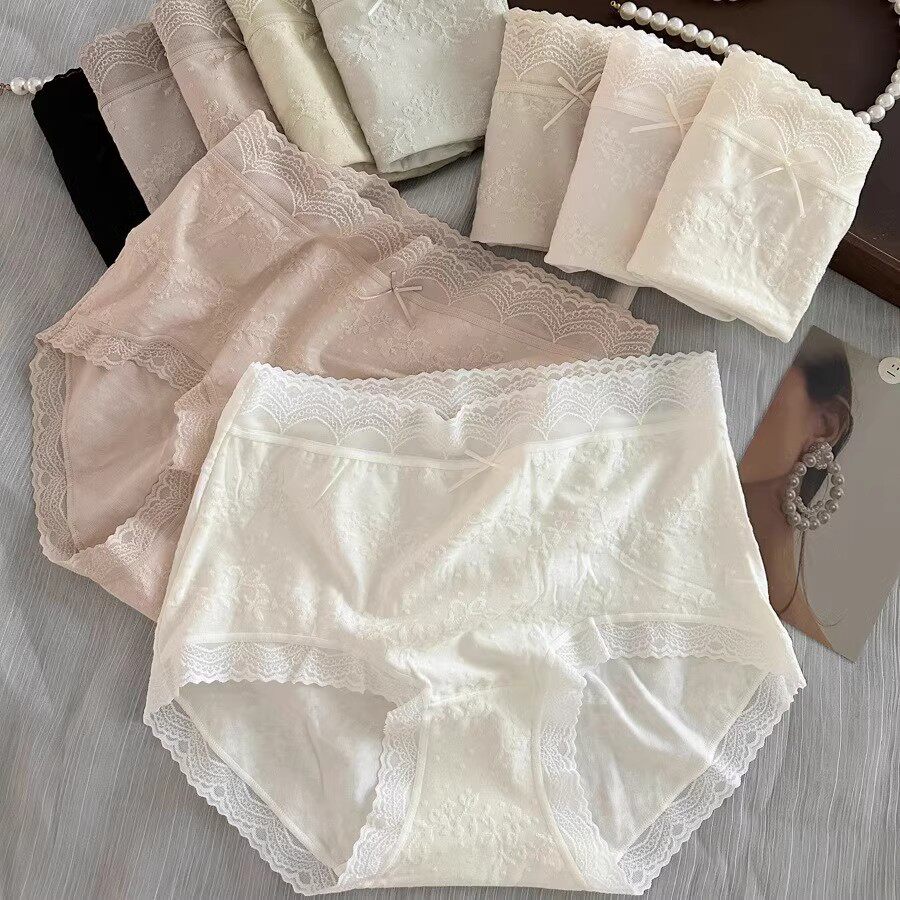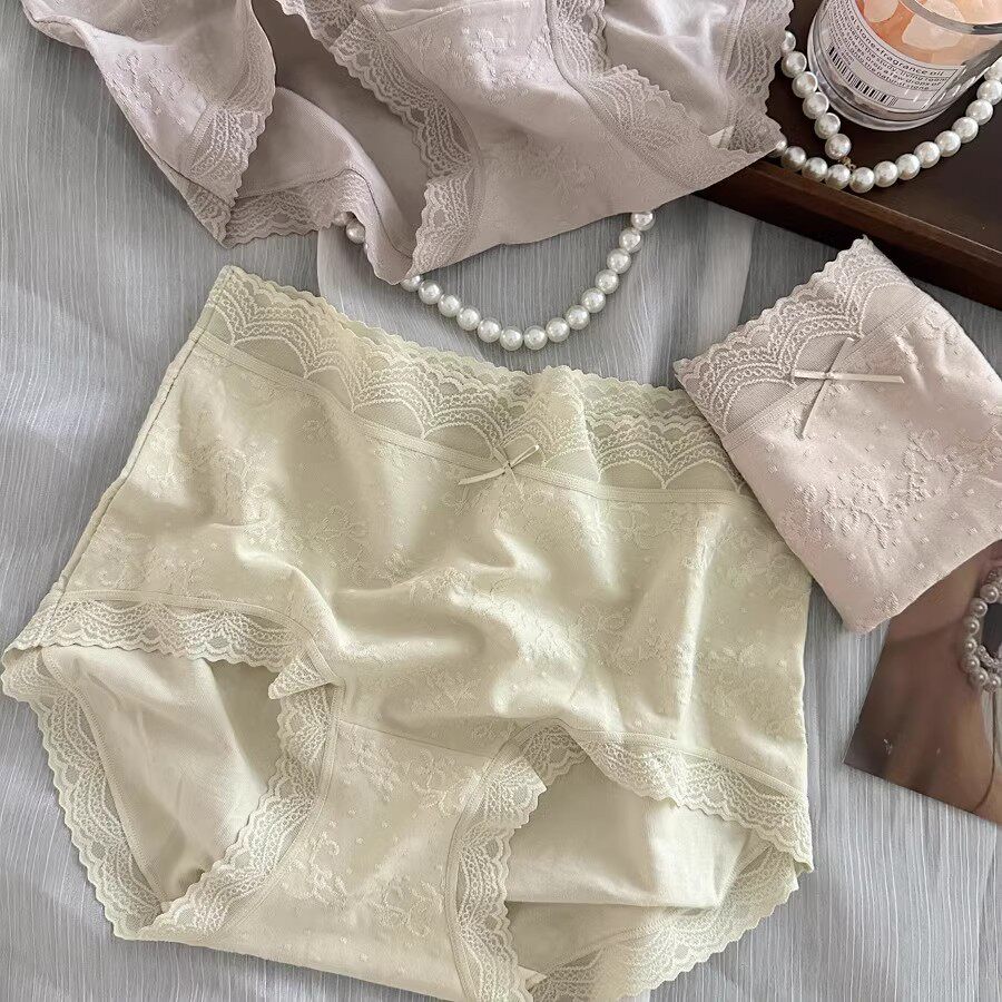 📚 法式提花棉蕾丝内裤女士2025新款棉裆舒适透气女生中腰三角短裤