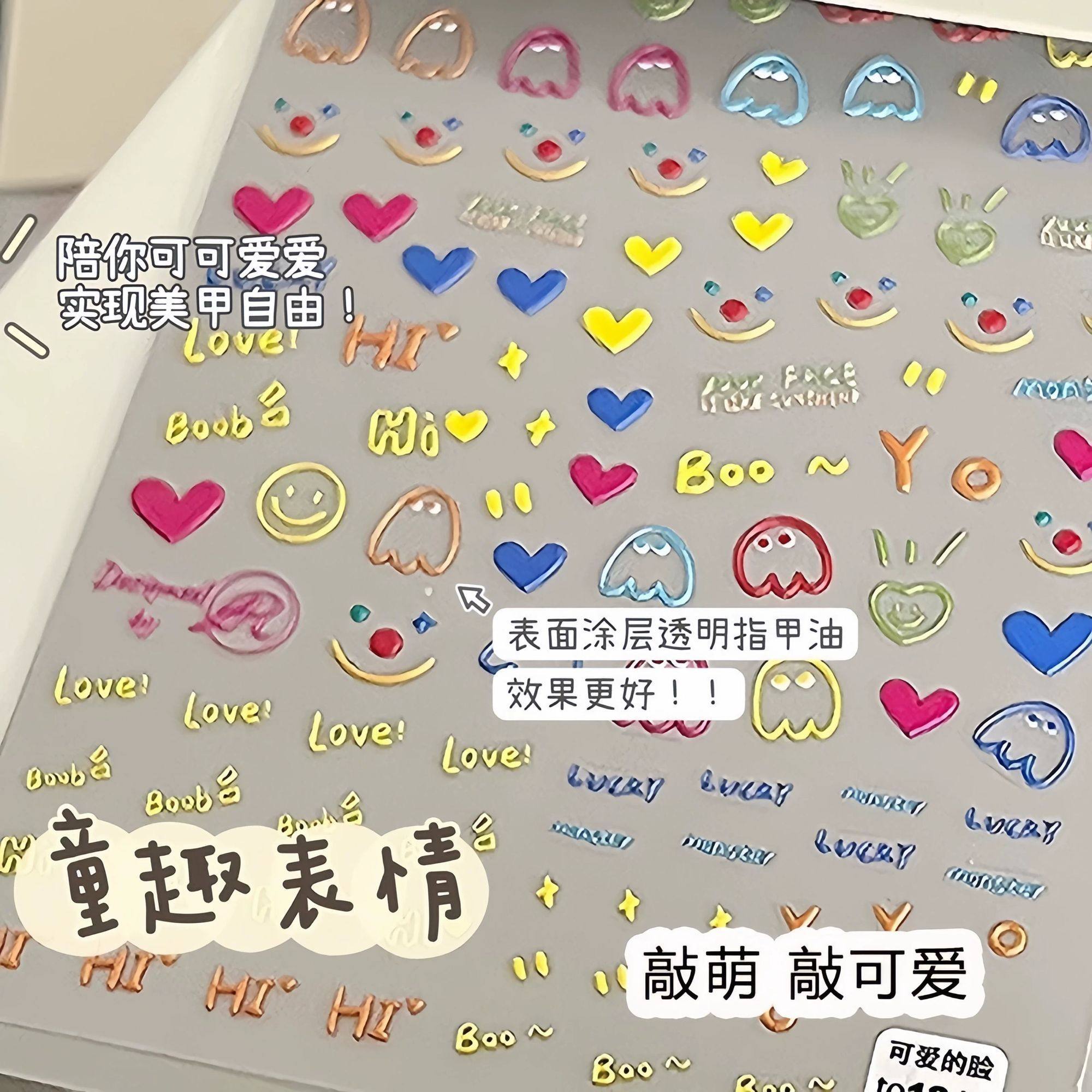想要尝试新事物的小伙伴们,真的不能错过这款童趣表情美甲贴!💕