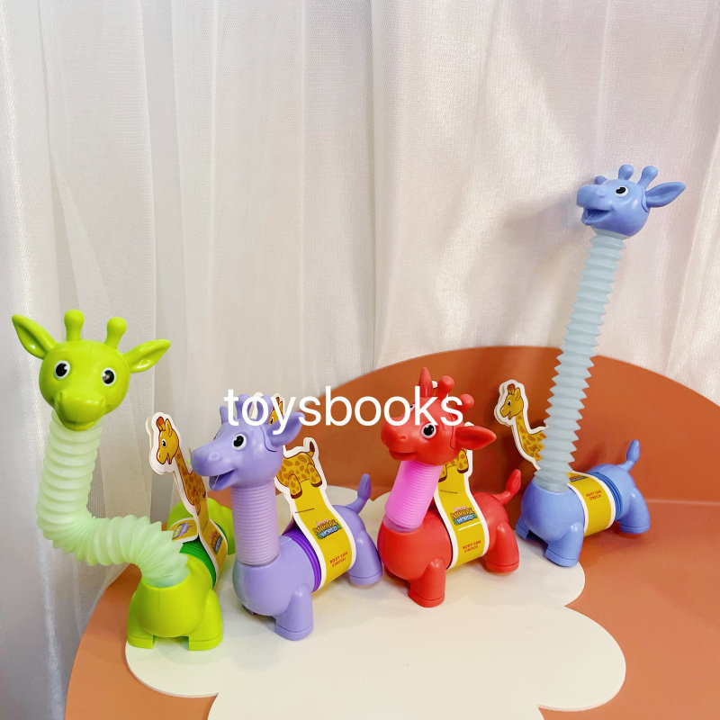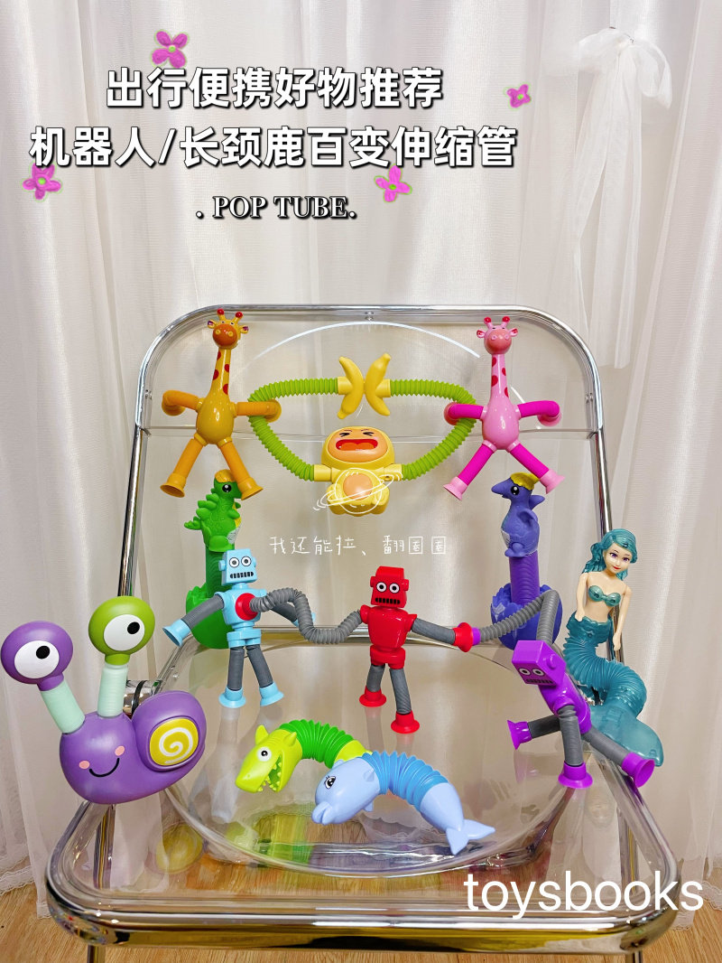 📚 儿童减压百变吸盘机器人伸缩管发光玩具猴子长颈鹿拉伸管便携出行