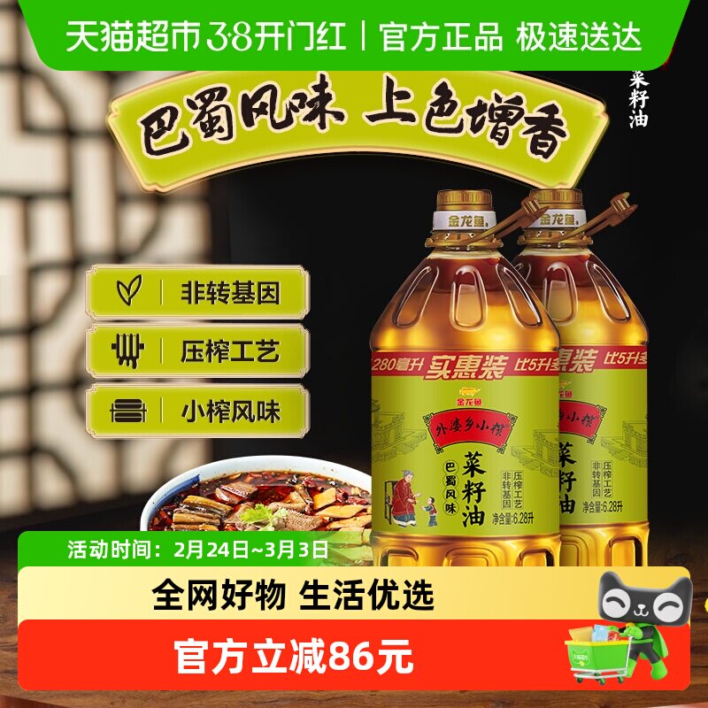📚 金龙鱼外婆乡小榨巴蜀风味菜籽油6.28L*2桶