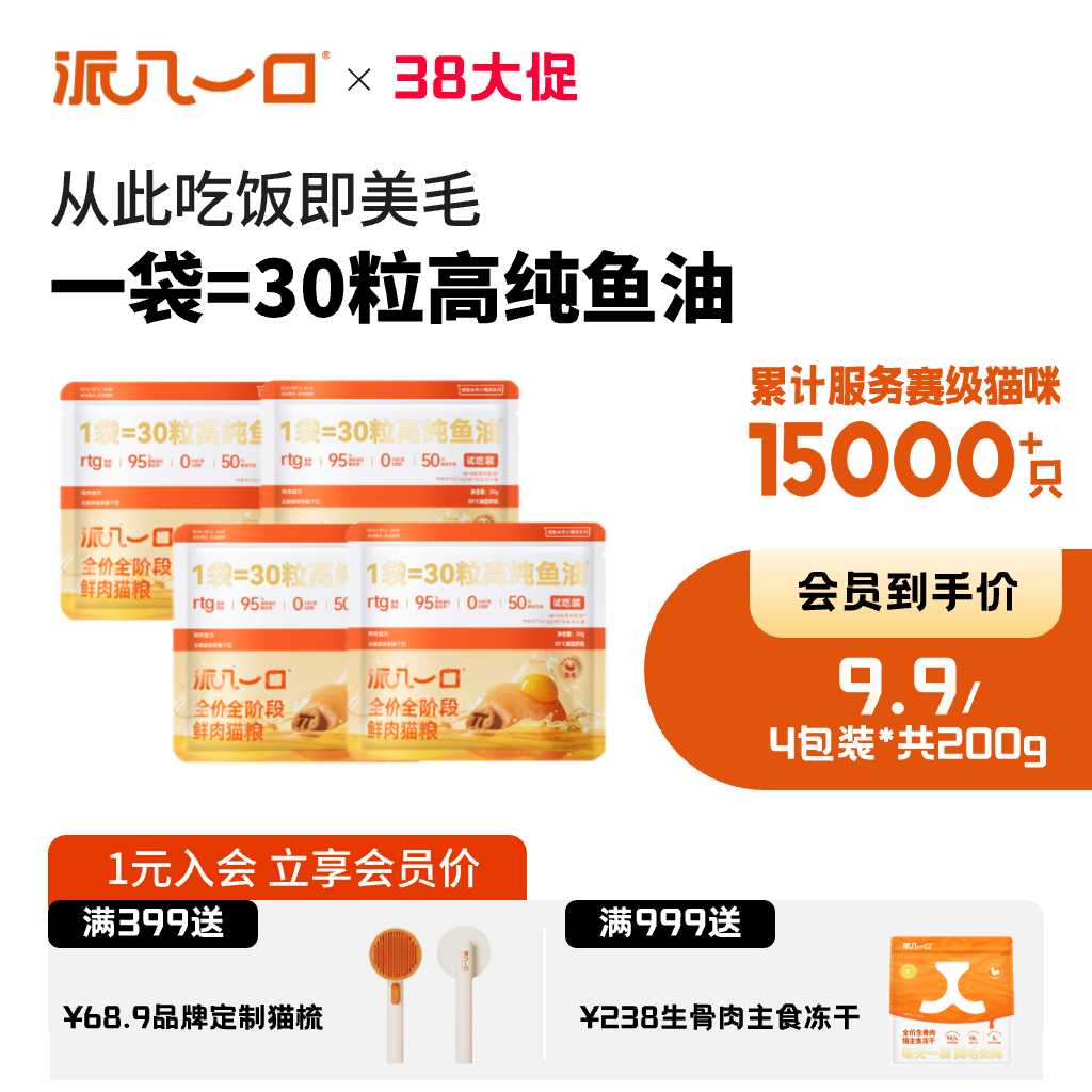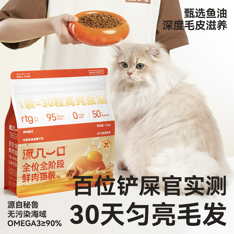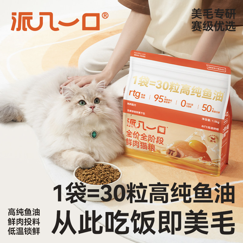📚 【试吃装套餐】派几一口赛级美毛全期鸡肉鱼油高蛋白亮毛鳀鱼猫粮
