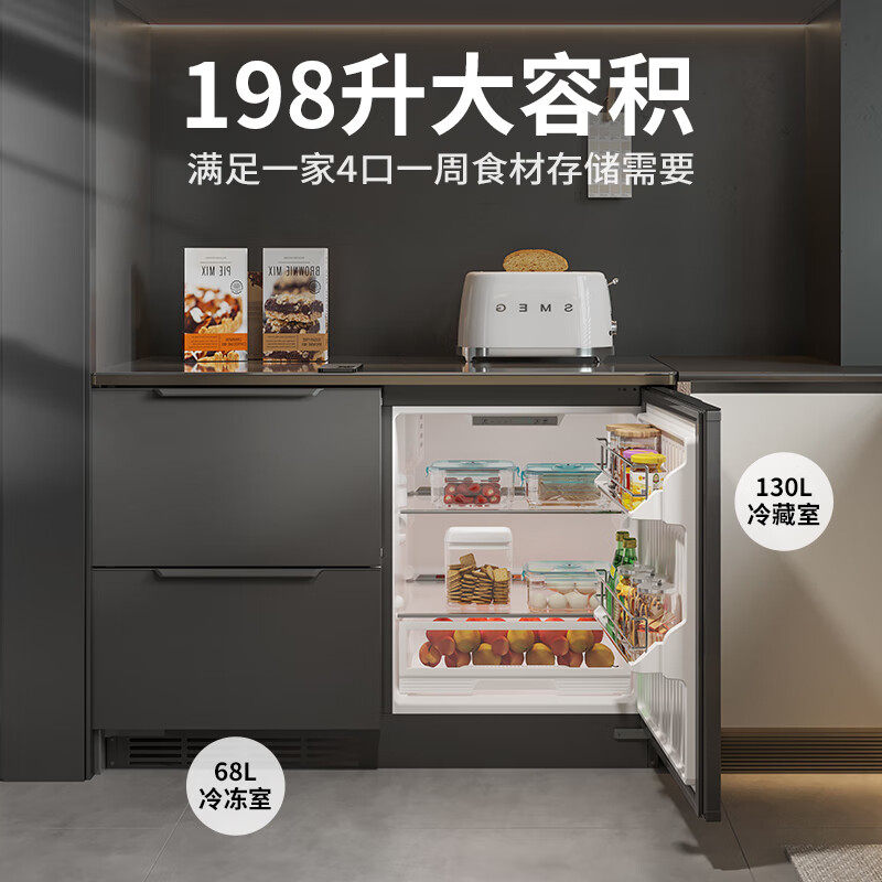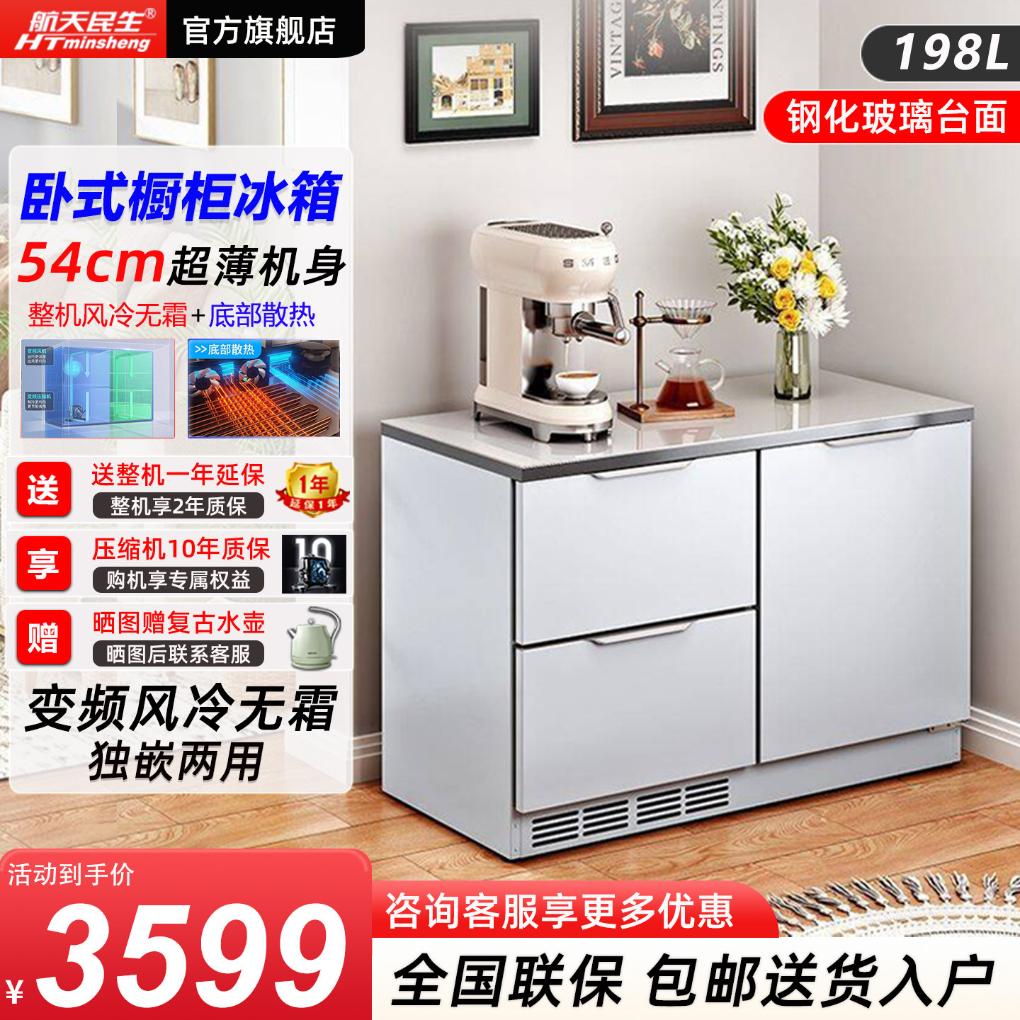📚 航天民生198升变频风冷卧式冰箱家用零嵌入式小户型抽屉式矮冰箱