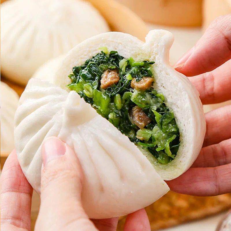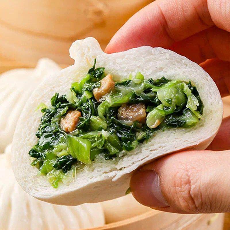 📚 新货扬州东园包子青菜包80g120个营养早餐包子馒头猪肉包半成品商