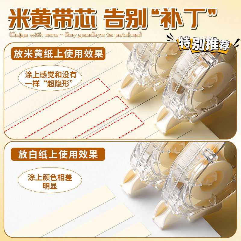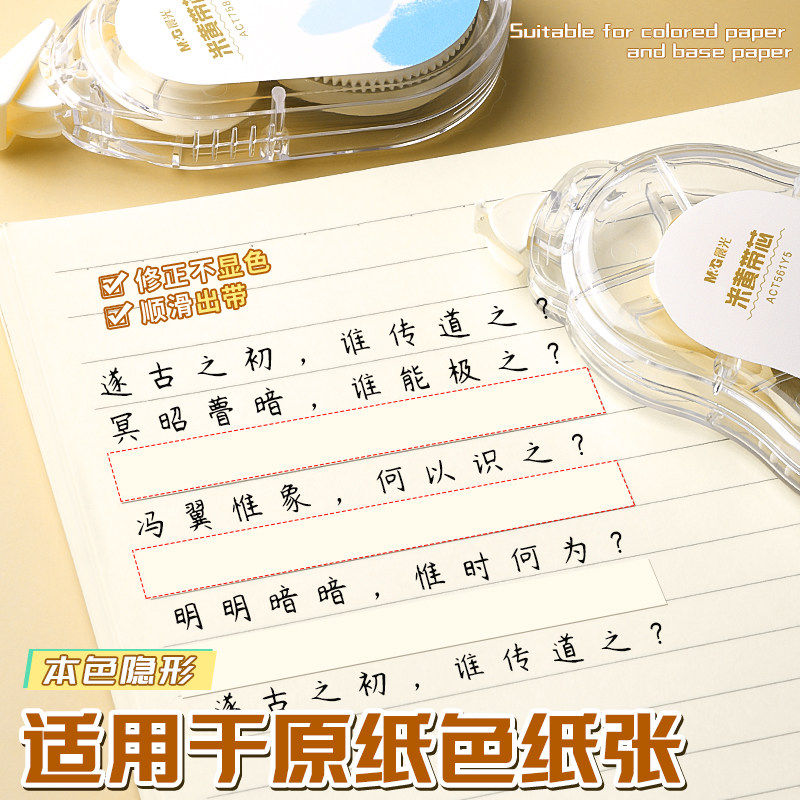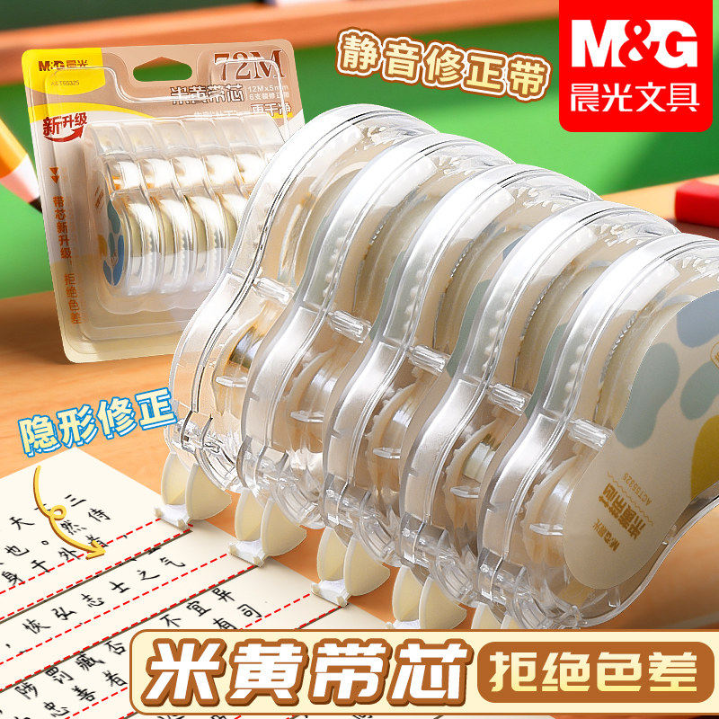📚 晨光米黄色修正带小学生专用涂改带官方旗舰店简约风初高中生改正带高颜值大容量实惠装改字带顺滑静音原纸色