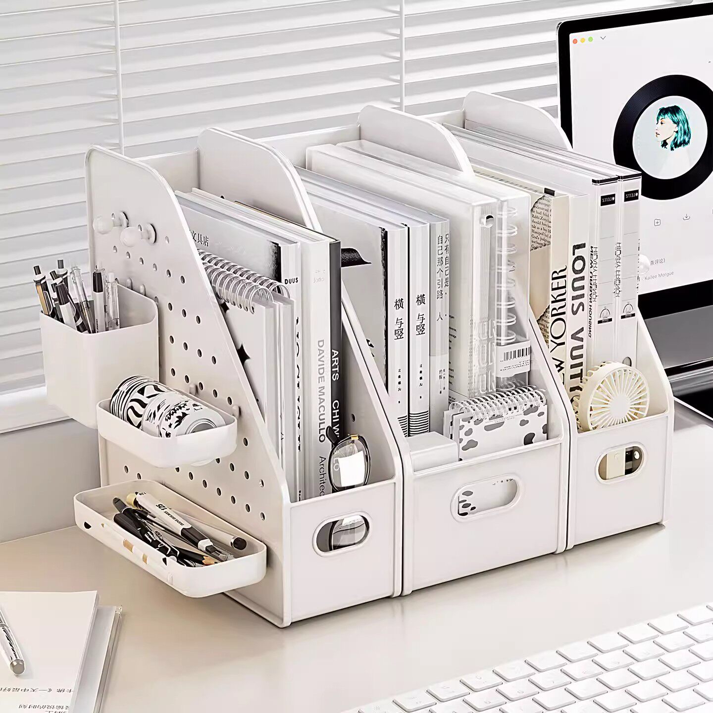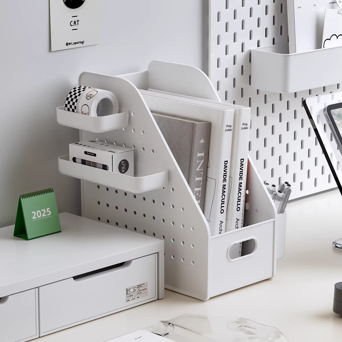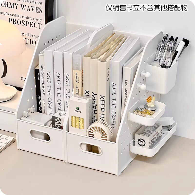 📚 书架桌面洞洞板置物架书立架学生书本整理盒办公室工位文件收纳盒