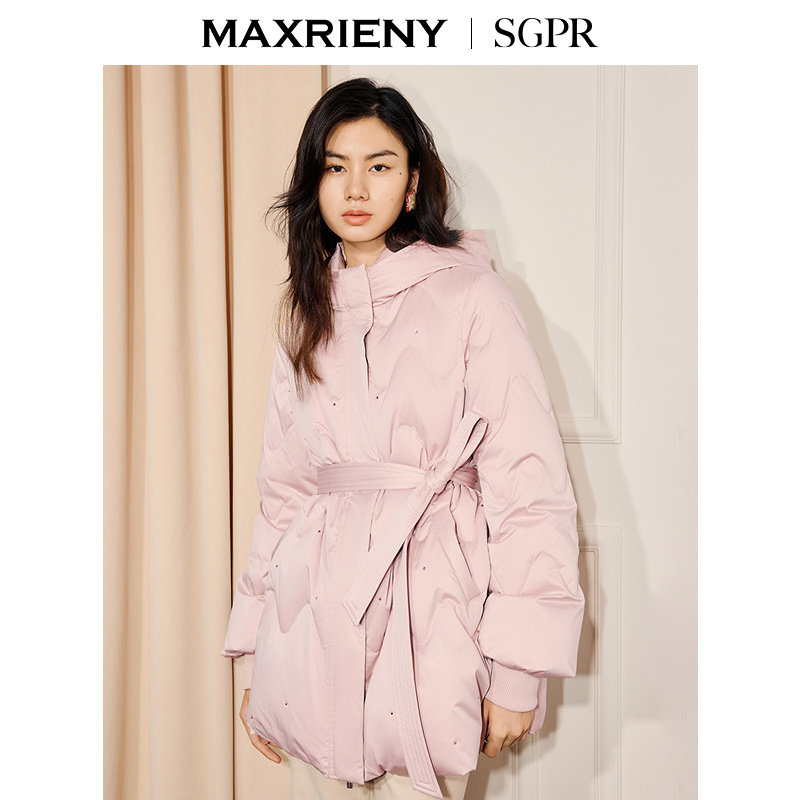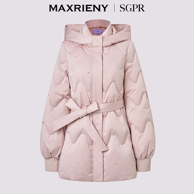 📚 【SGPR】立体波浪绗缝H型中长款羽绒服鸭绒保暖外套2025冬季新款