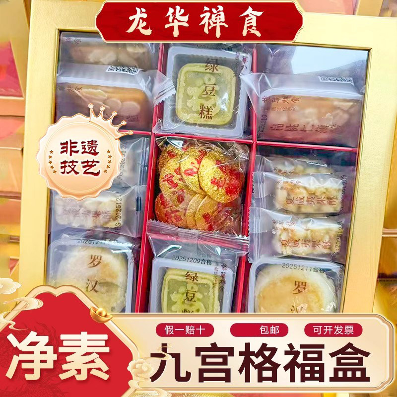 📚 上海龙华素斋九宫格福盒 礼盒净素禅食点心糕点伴手年货