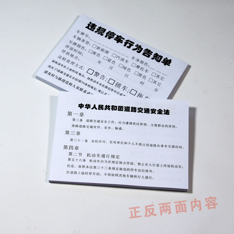 📚 通用交通违法乱停车提示违规提醒告知单标贴警告广告贴提示单定制
