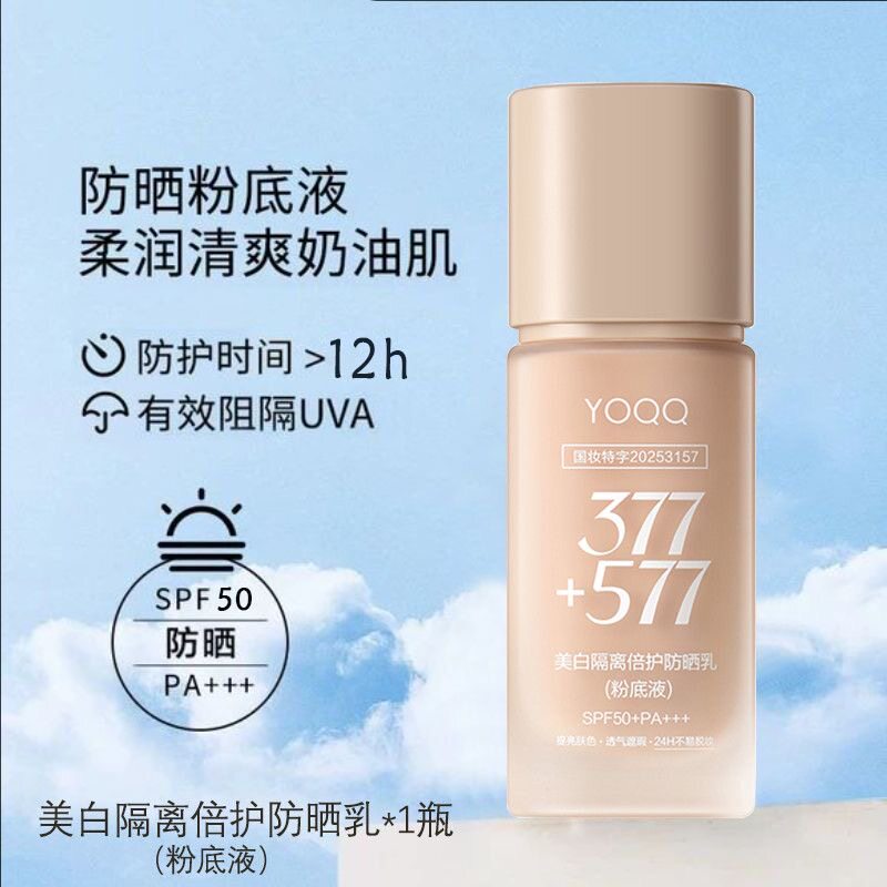 📚 【24h不易脱妆】377+577美白防晒粉底液隔离遮瑕持妆提亮防水保湿