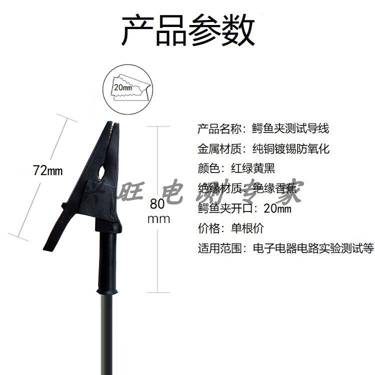 📚 10A/20A/30A双头鳄鱼夹测试线纯铜20mm高压绝缘夹带线电源连接线