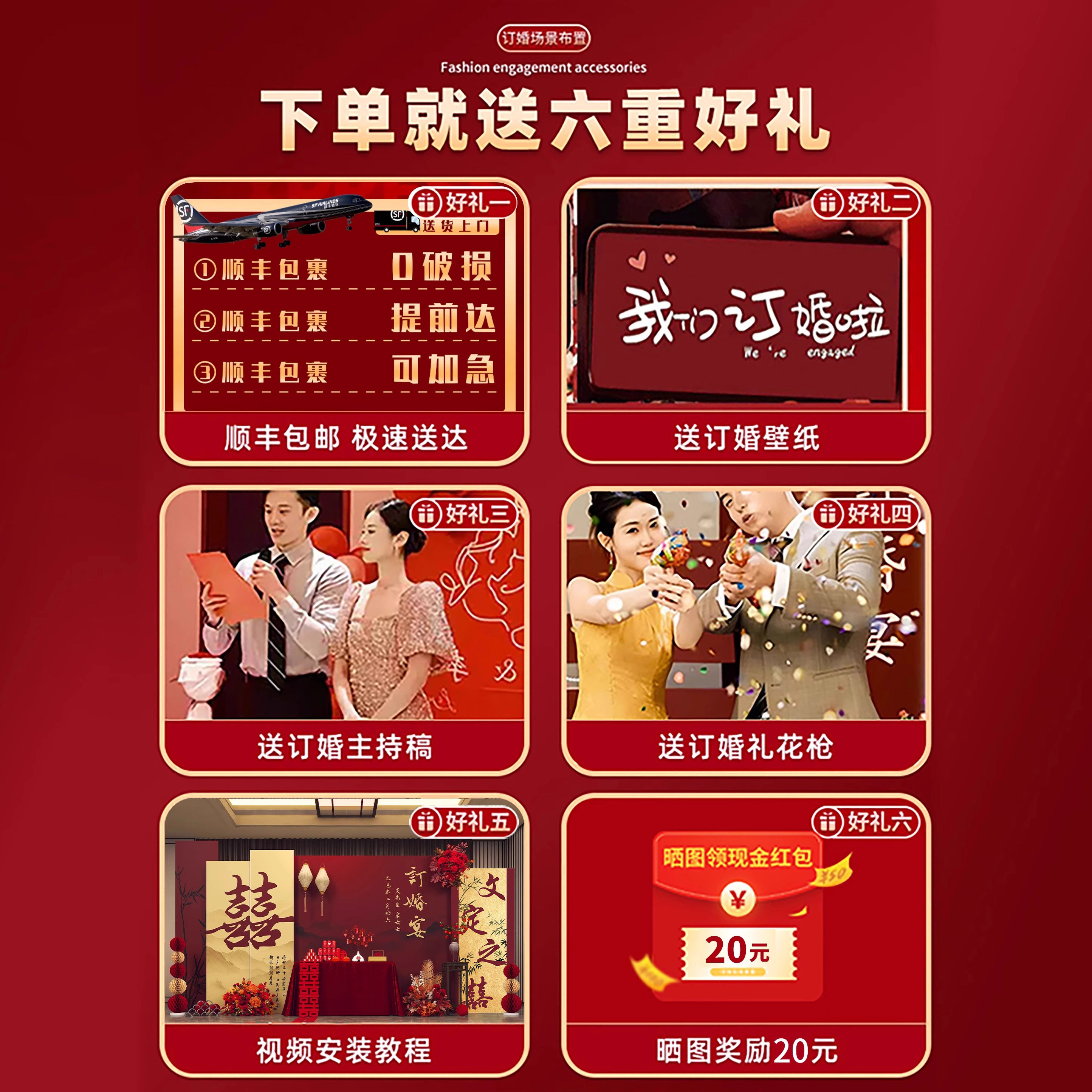 📚 网红订婚宴布置装饰全套背景墙kt板迎宾牌高级仪式感简约气球摆件