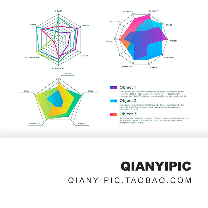 📚 雷达图表插画图案维度分析数据展示 AI素材eps模板JPG大图下载